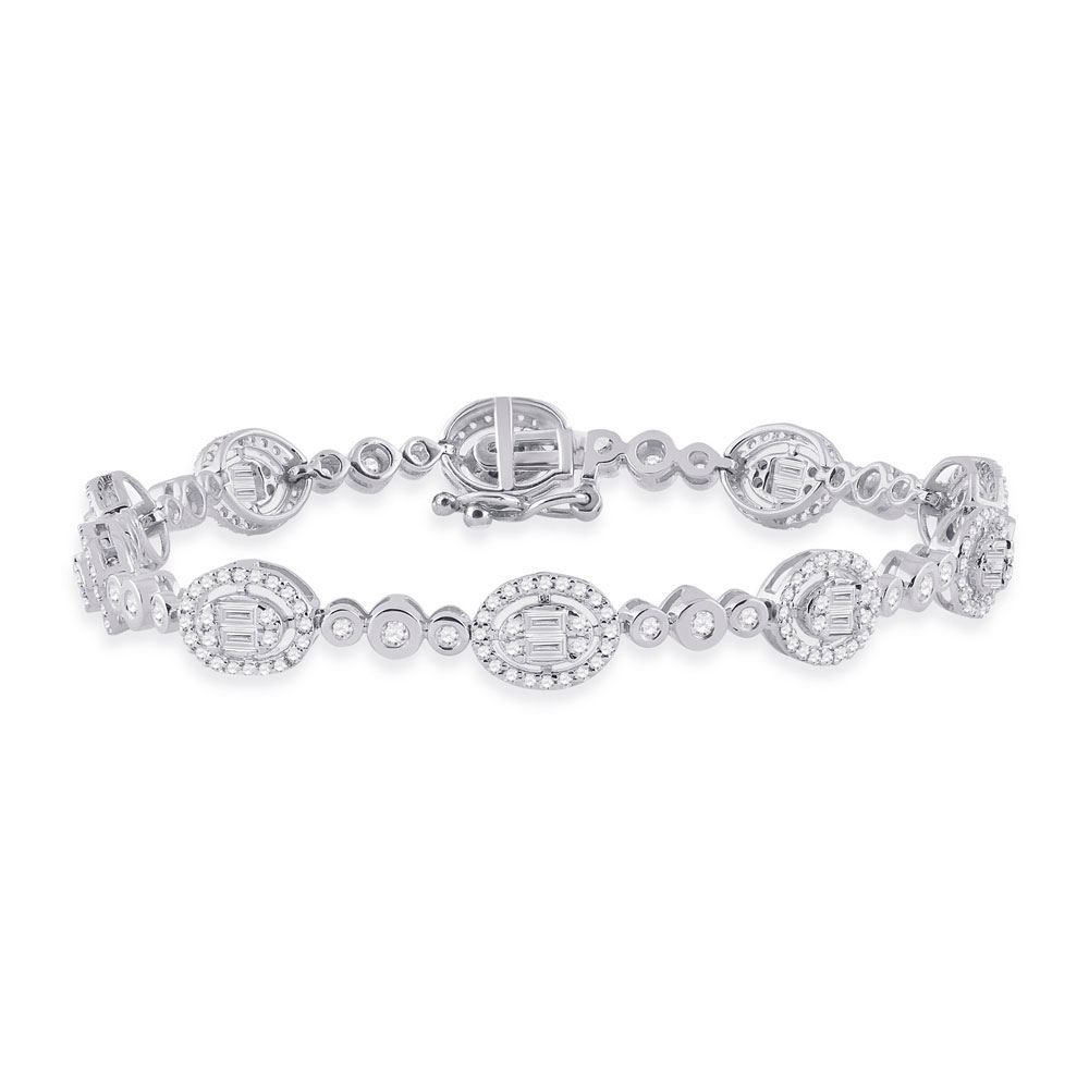 14kt White Gold Womens Baguette Diamond Oval Link Bracelet 2 Cttw