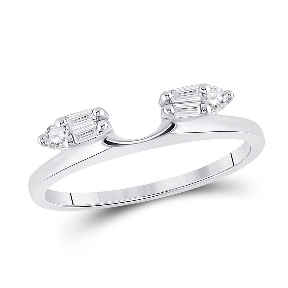 Baguette Diamond Ring Guard Wrap Solitaire Enhancer 1/5 Cttw 14KT White Gold