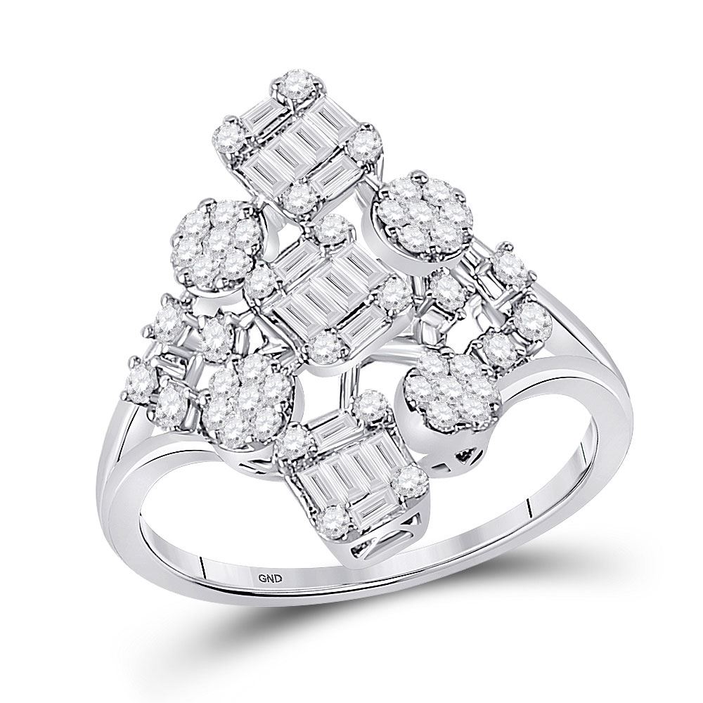 14kt White Gold Womens Baguette Diamond Scattered Cluster Ring 3/4 Cttw
