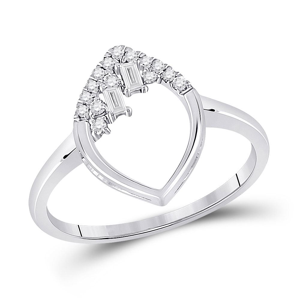 14kt White Gold Womens Baguette Diamond Scattered Oval Ring 1/8 Cttw.