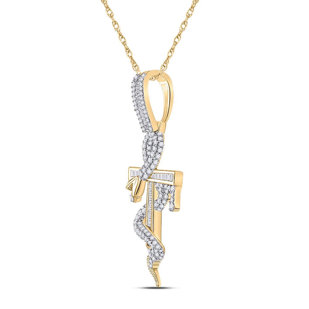 Baguette Diamond Snake Ankh Cross Charm Pendant 1-1/5 Cttw 10KT Yellow Gold