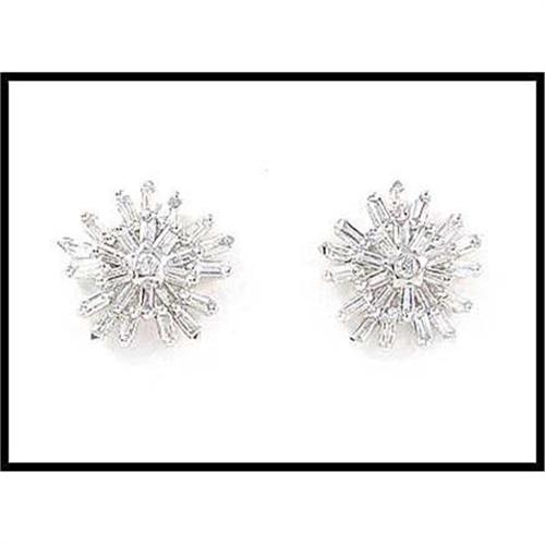 50 baguette diamonds and 2 rounds are set in platinum to create a stunning snowflake design. They are 12mm (11/32") in diameter, and beautiful made. Diamonds almost 2/3 carats combined. Totals 4 grams. Was priced for $1450.