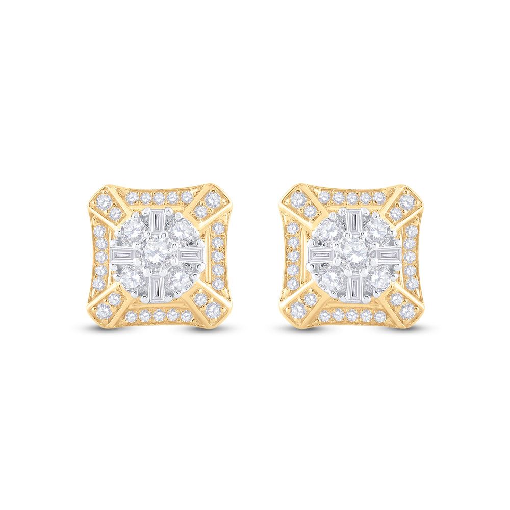 14kt Yellow Gold Mens Baguette Diamond Square Cluster Earrings 3/4 Cttw.