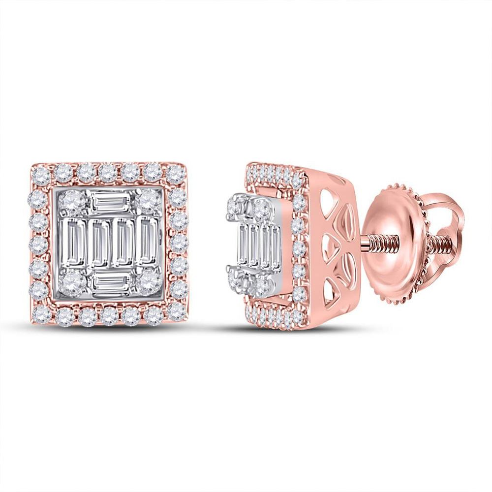 14kt Rose Gold Womens Baguette Diamond Square Cluster Earrings 3/8 Cttw