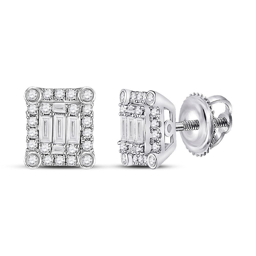 14kt White Gold Womens Baguette Diamond Square Cluster Earrings 3/8 Cttw