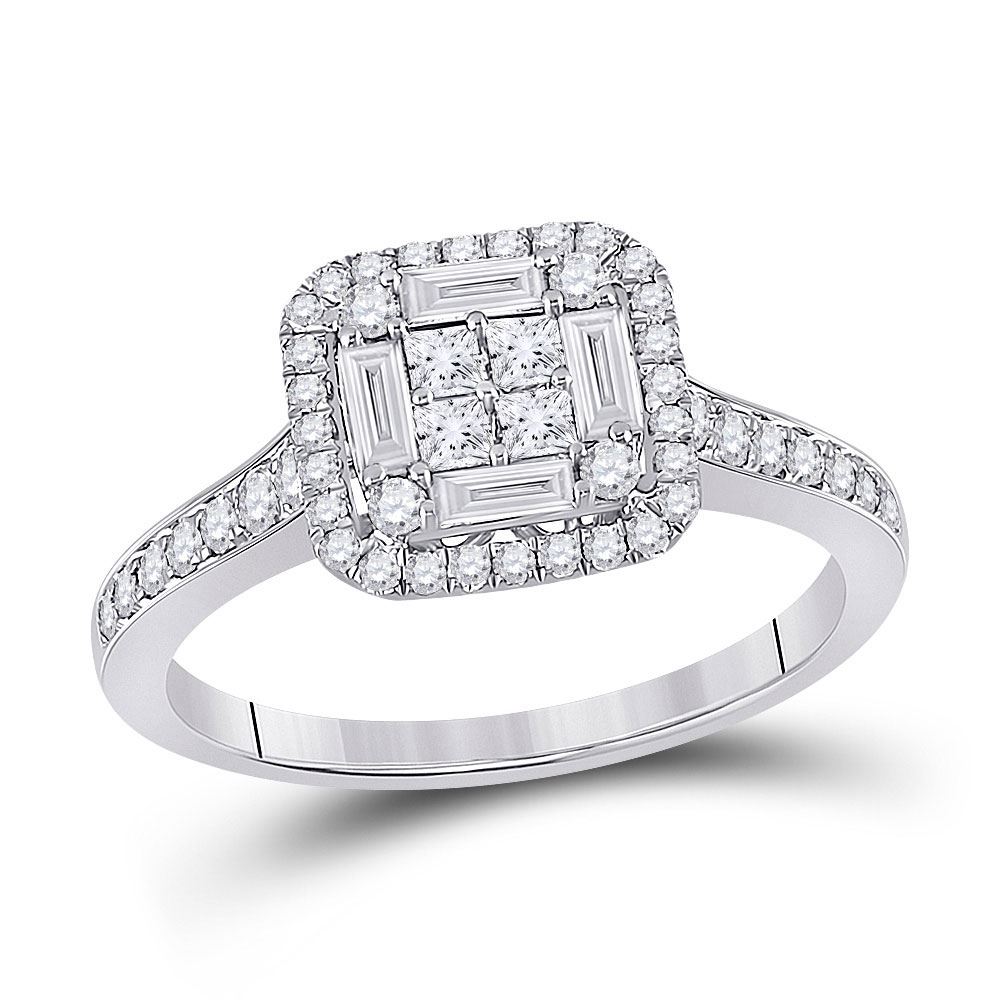 14kt White Gold Womens Baguette Diamond Square Cluster Ring 3/4 Cttw.