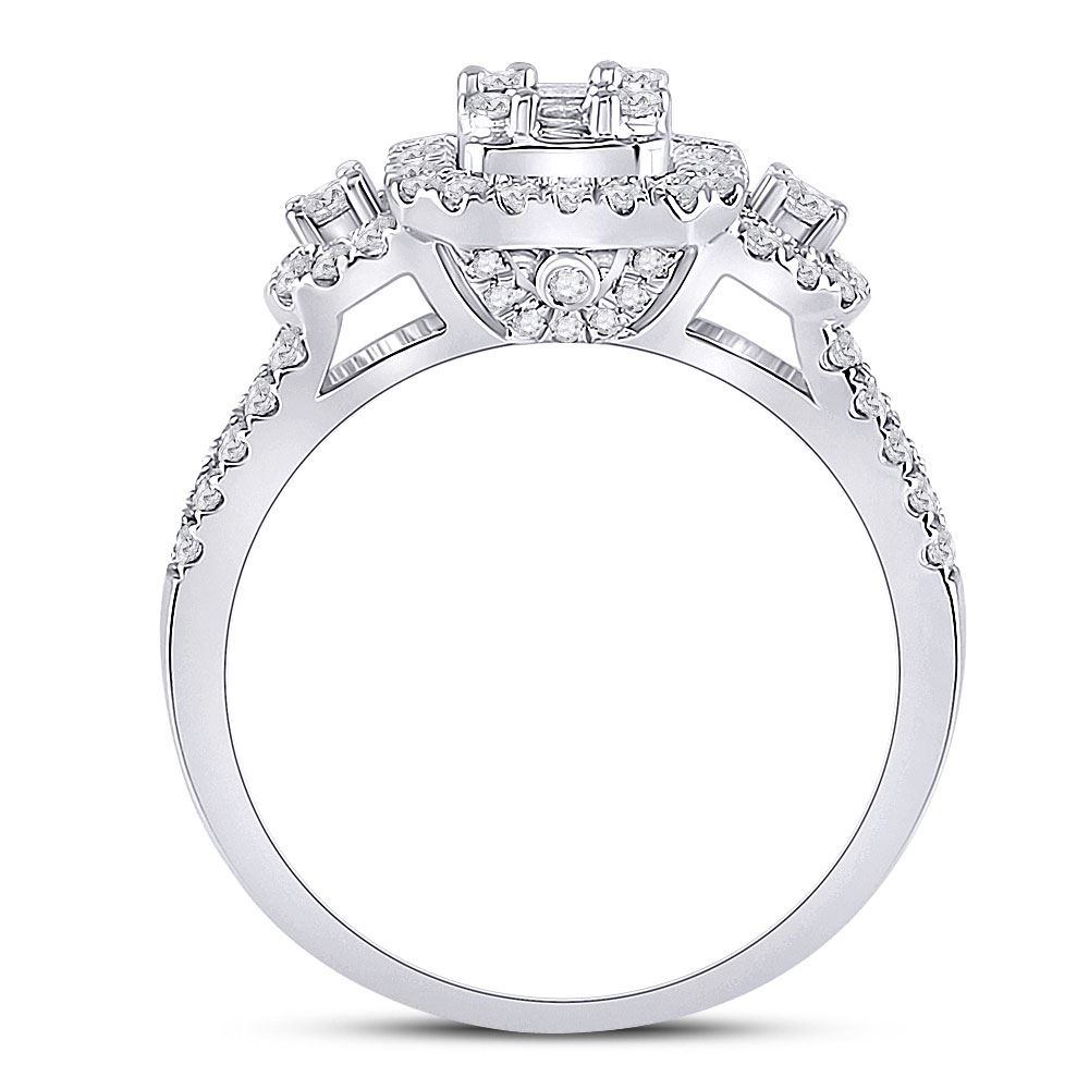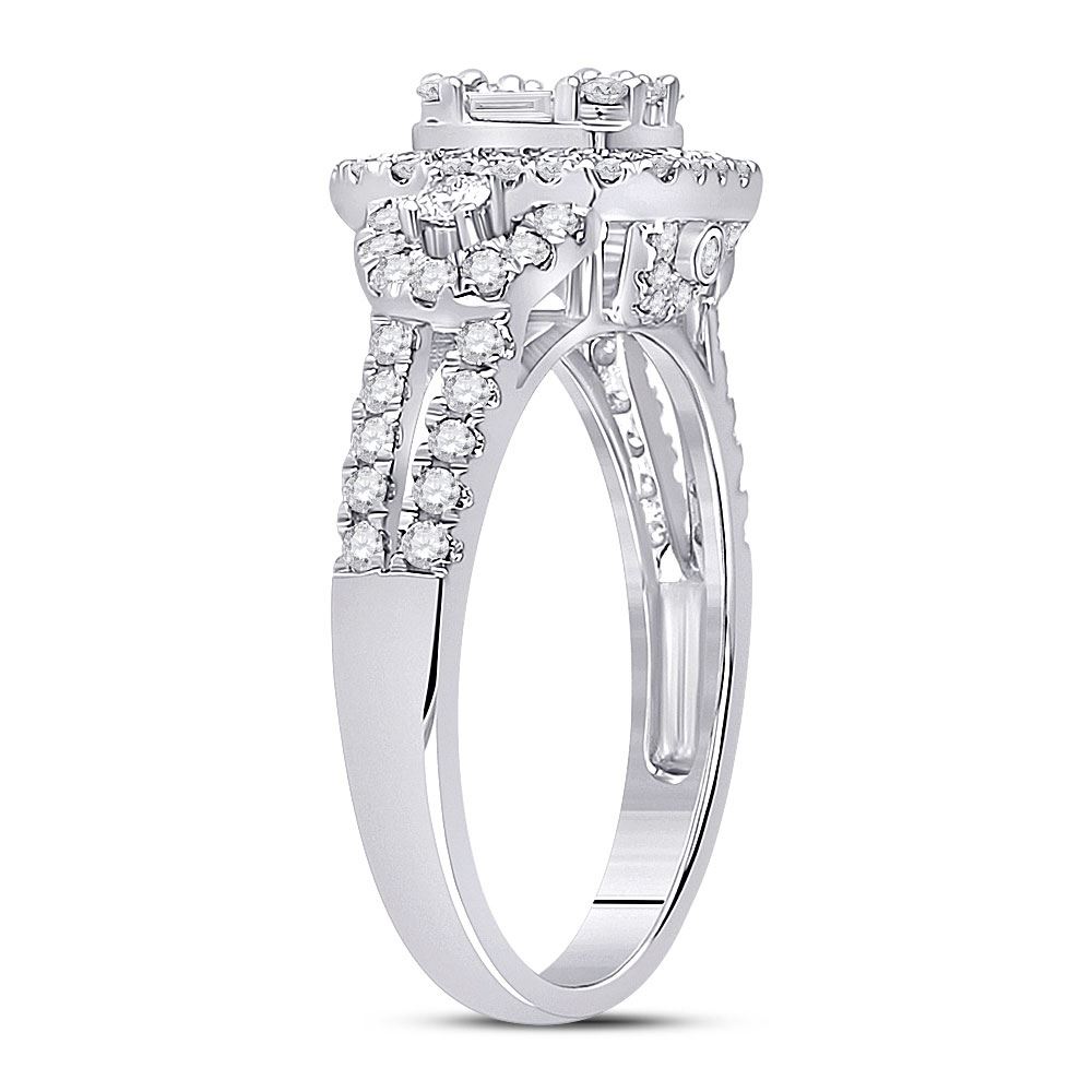 14kt White Gold Womens Baguette Diamond Square Cluster Ring 3/4 Cttw