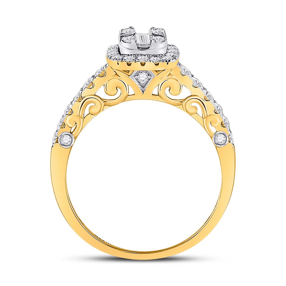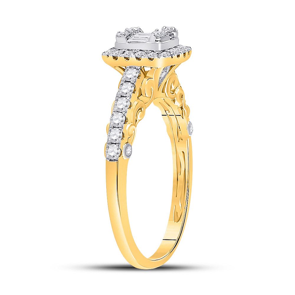 14kt Yellow Gold Womens Baguette Diamond Square Cluster Ring 5/8 Cttw