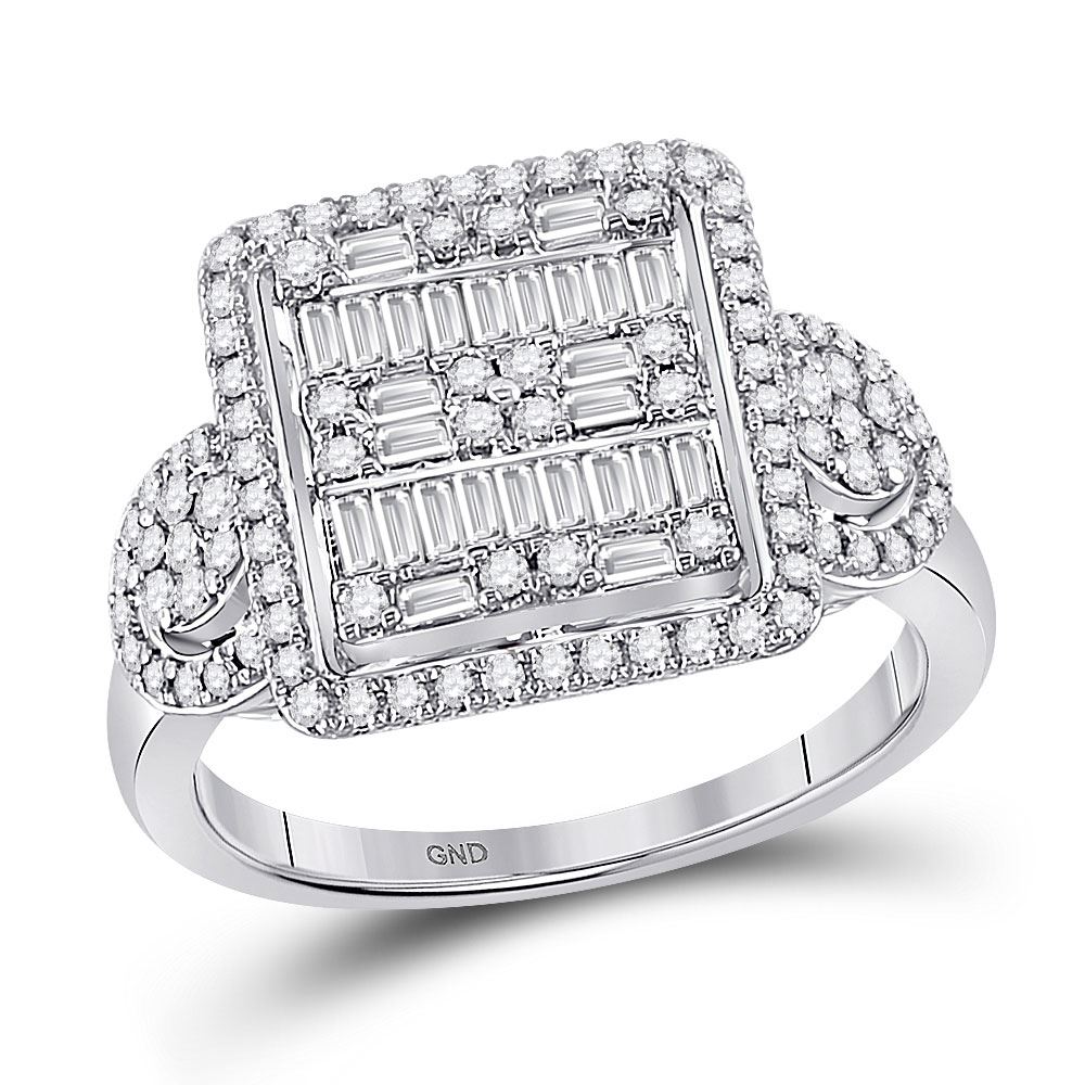 14kt White Gold Womens Baguette Diamond Square Cluster Ring 7/8 Cttw.