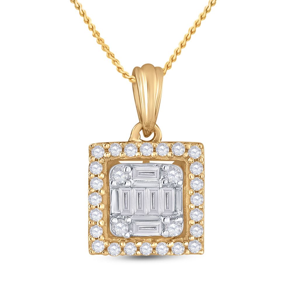 14kt Yellow Gold Womens Baguette Diamond Square Pendant 1/5 Cttw