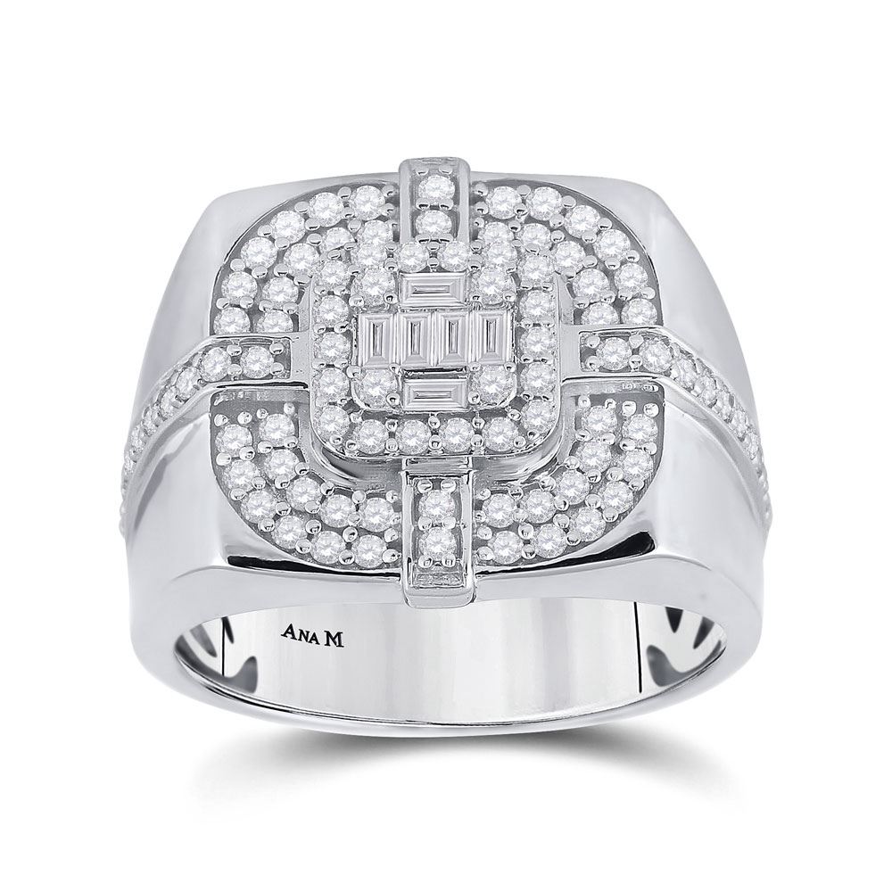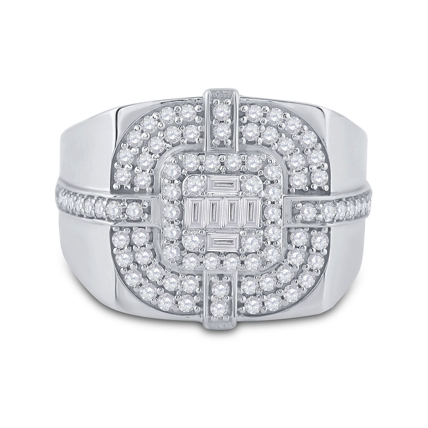 14kt White Gold Mens Baguette Diamond Square Ring 1 Cttw.