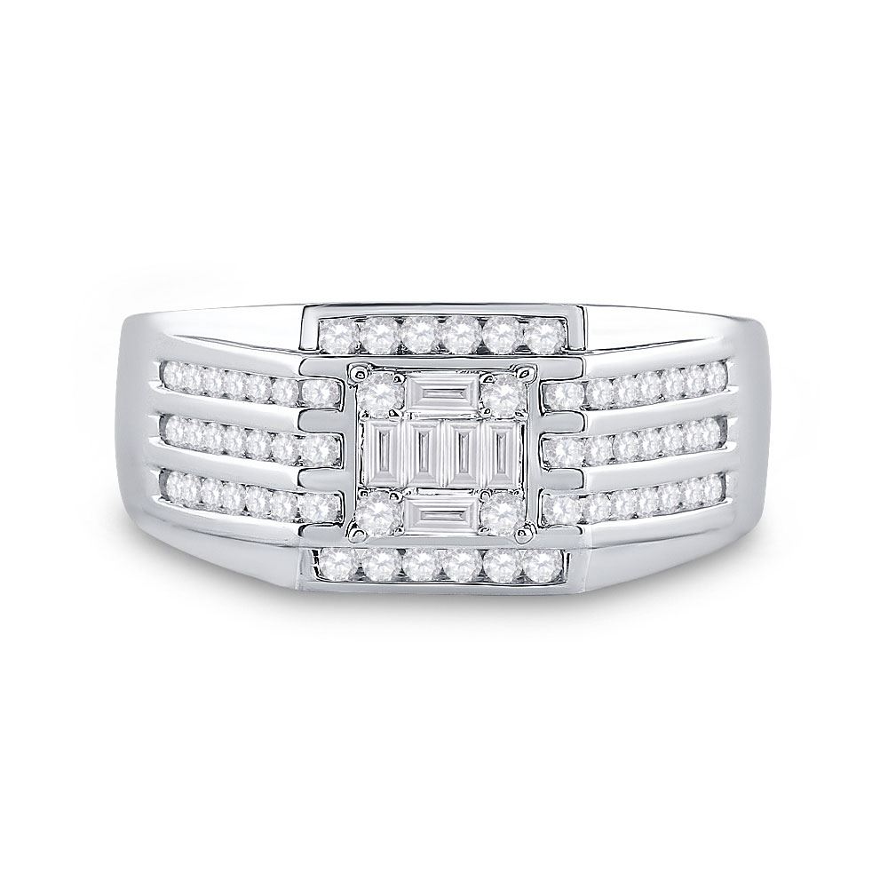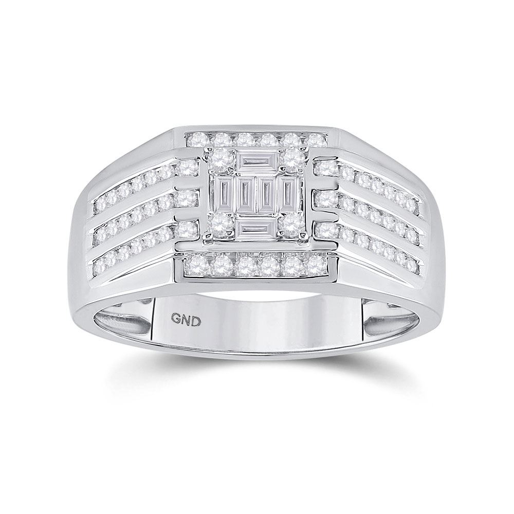 14kt White Gold Mens Baguette Diamond Square Ring 3/4 Cttw.