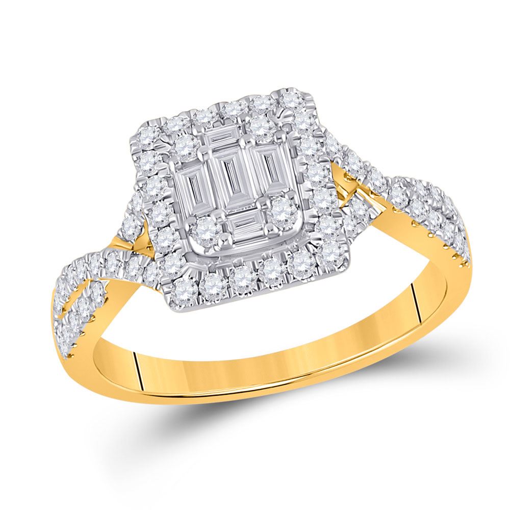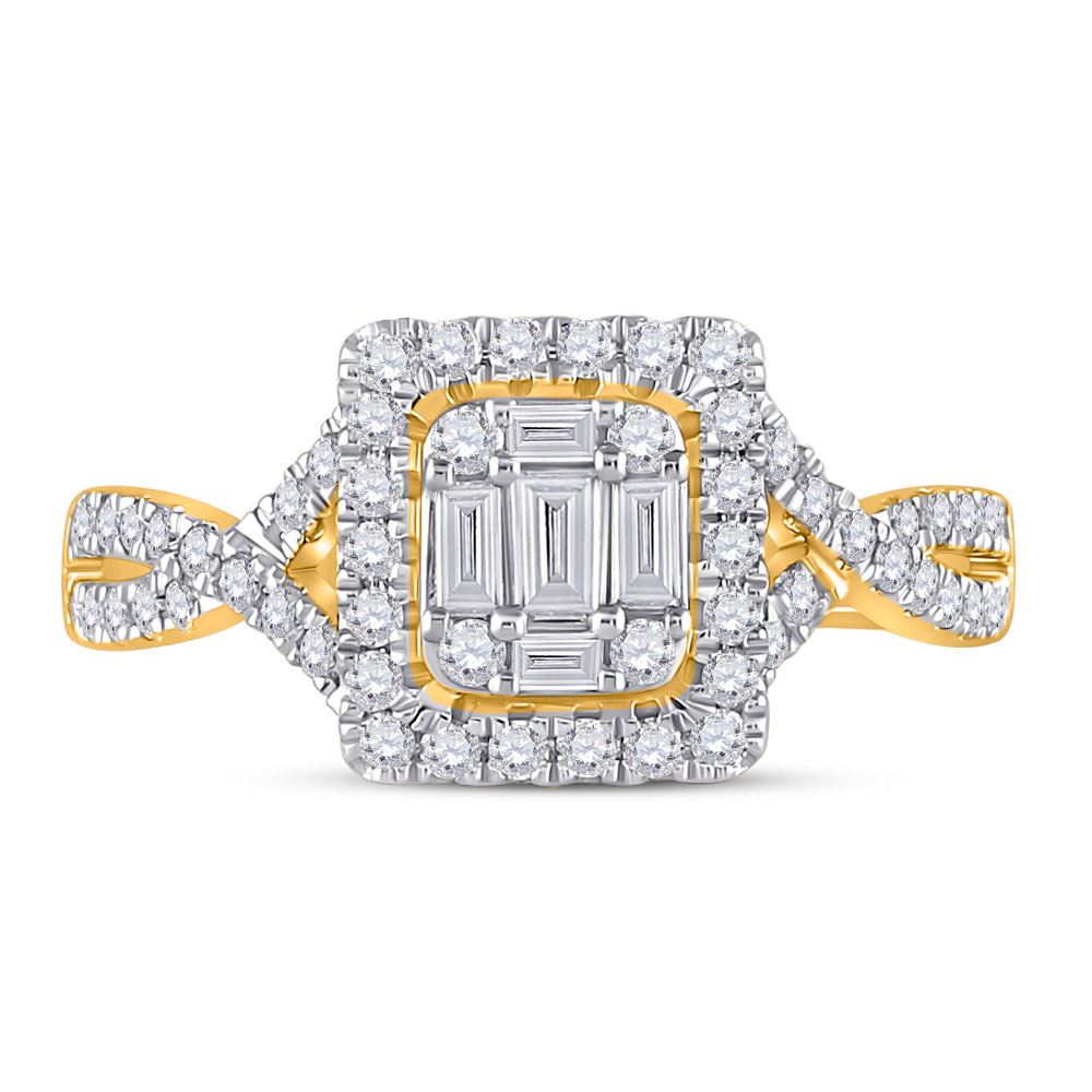 14kt Yellow Gold Womens Baguette Diamond Square Ring 5/8 Cttw
