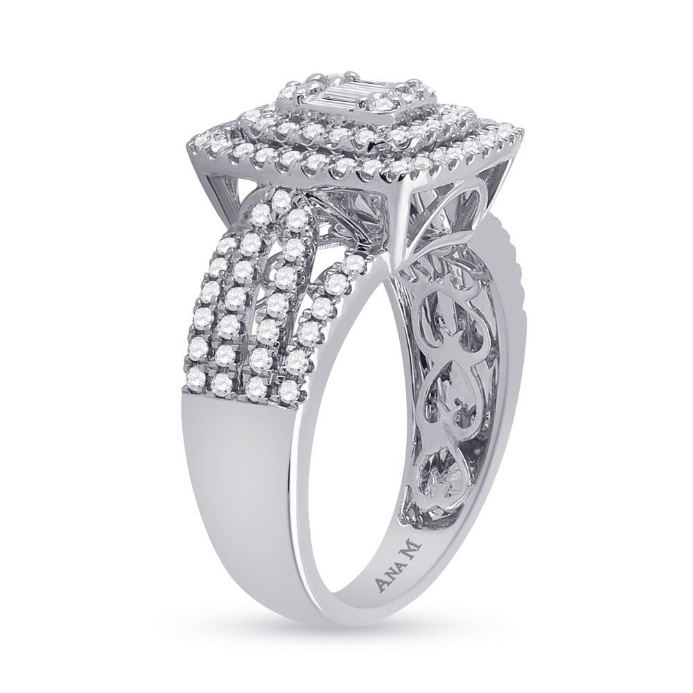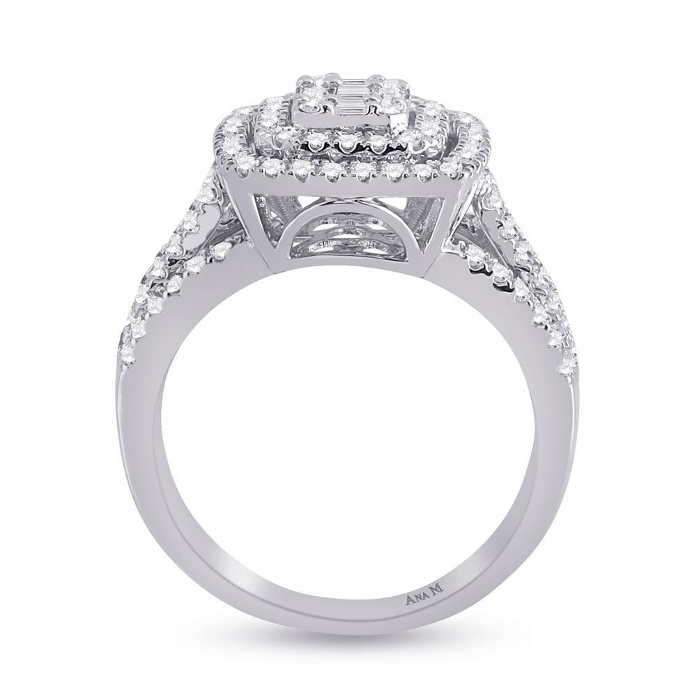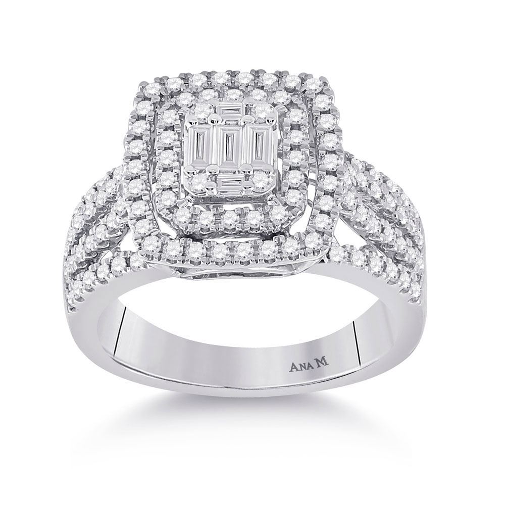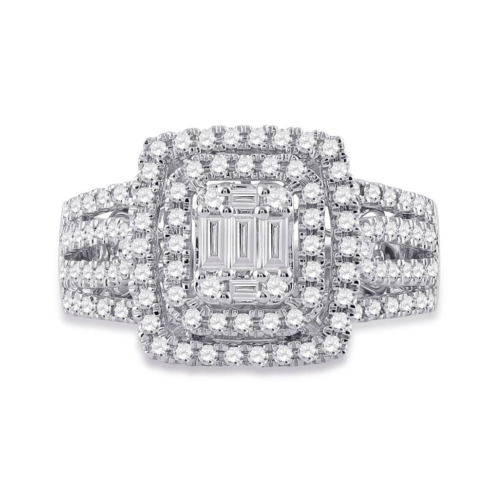14kt White Gold Womens Baguette Diamond Square Ring 7/8 Cttw