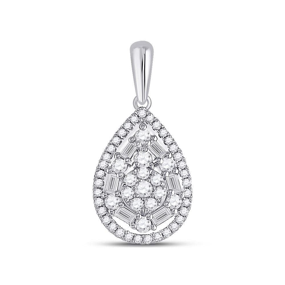 Baguette Diamond Teardrop Pendant 1/2 Cttw 14KT White Gold