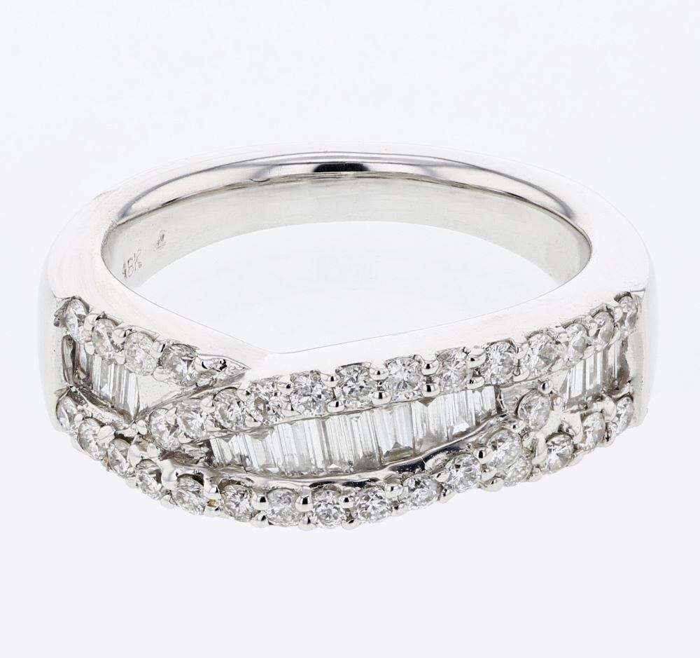 Baguette & Round Channel & Prong-set Diamond Band in 18K White Gold
