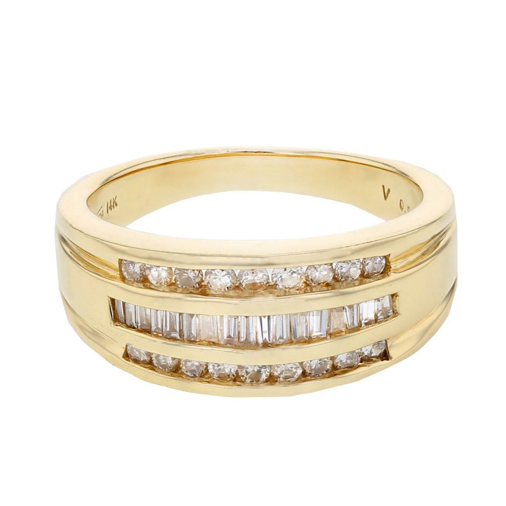 Baguette & Round Diamond Band in 14K Yellow Gold