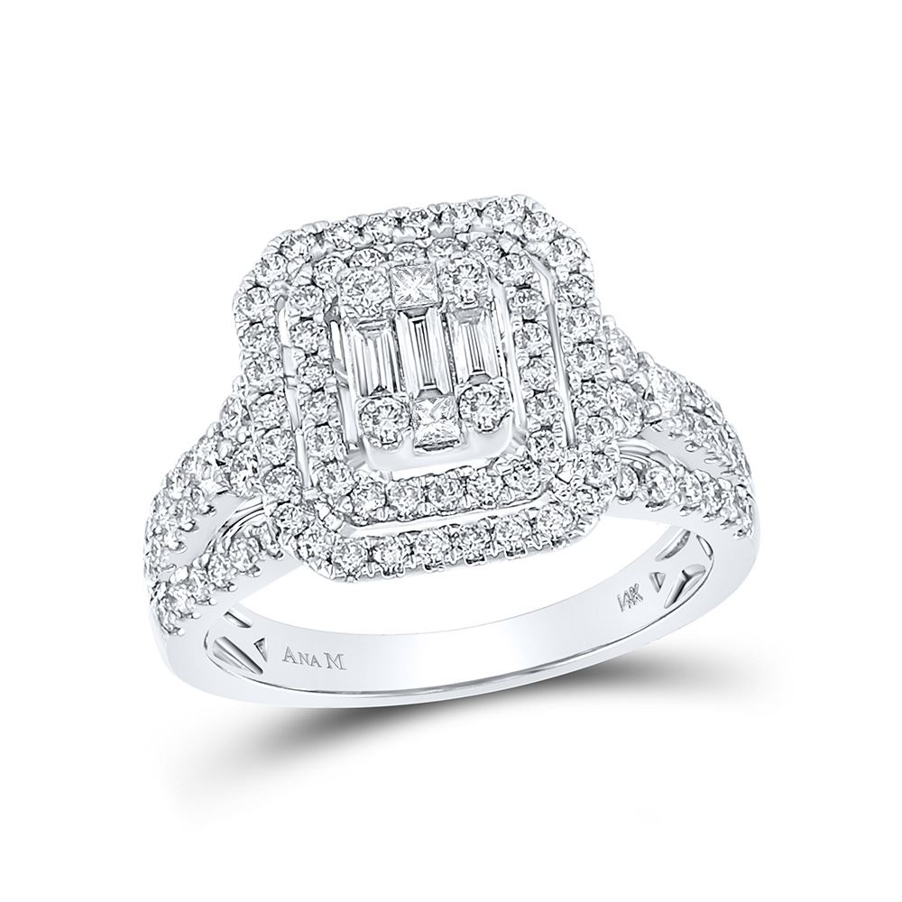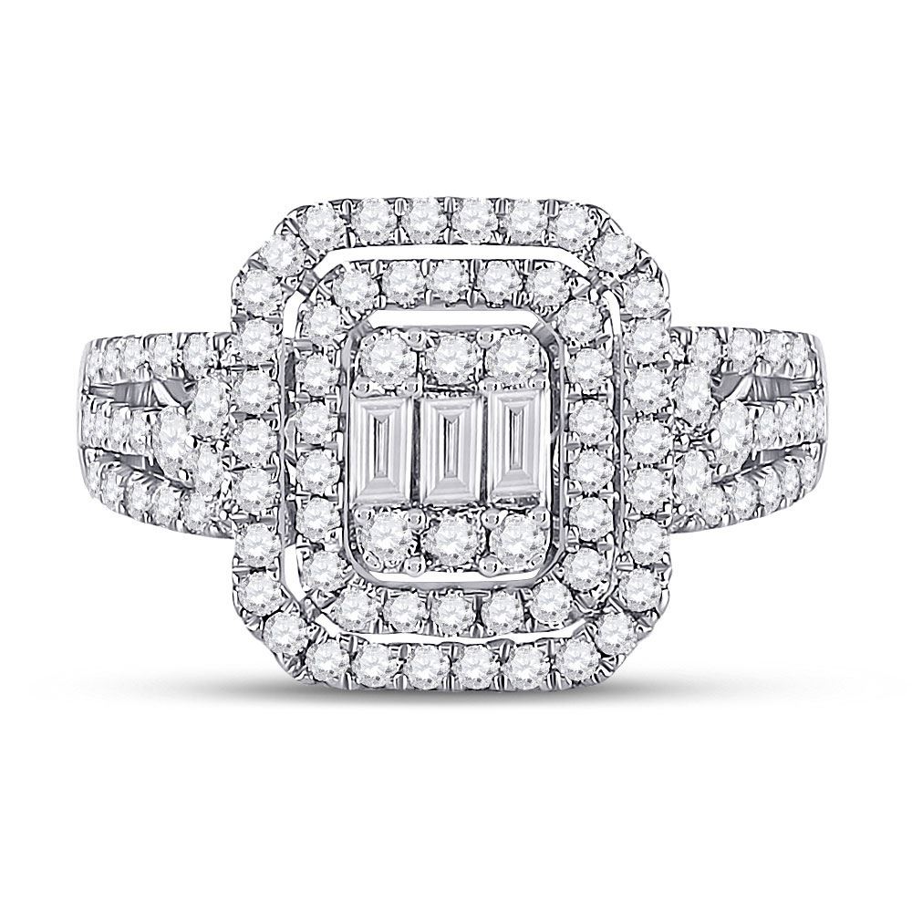 Baguette Round Diamond Cluster Ring 1-1/5 Cttw 14KT White Gold
