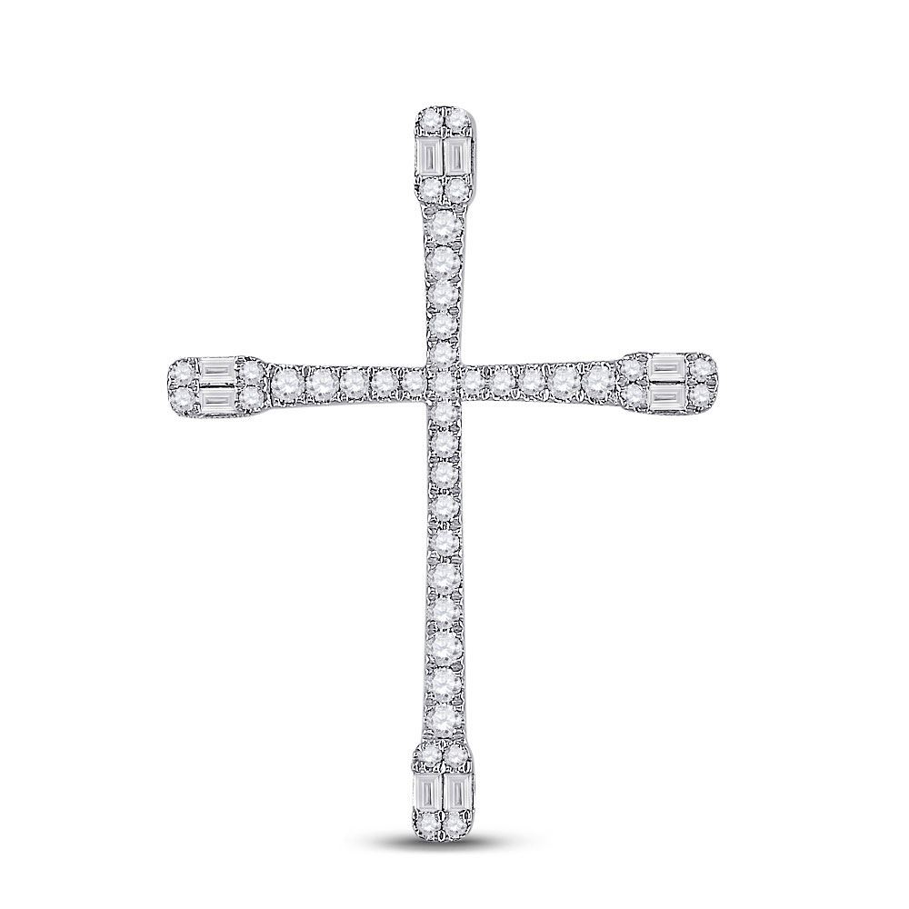 Baguette Round Diamond Cross Pendant 3/4 Cttw 14KT White Gold