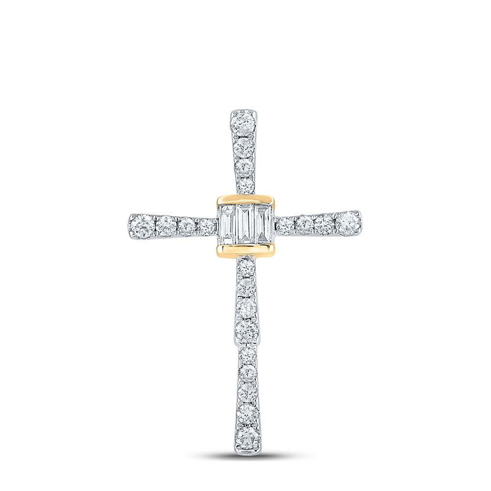 Baguette Round Diamond Cross Pendant 5/8 Cttw 14KT Yellow Gold