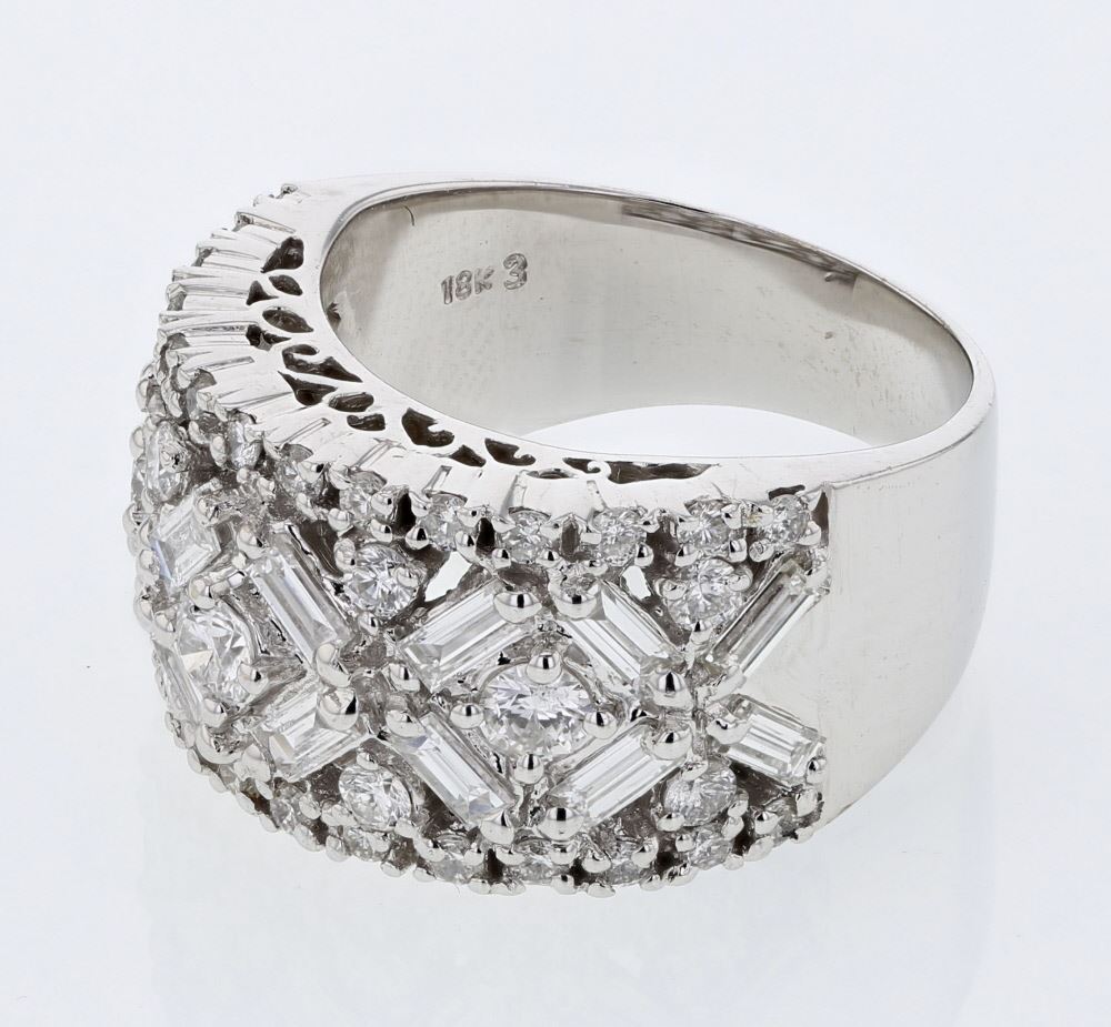 Baguette & Round Prong-set Diamond Ring in 18K White Gold