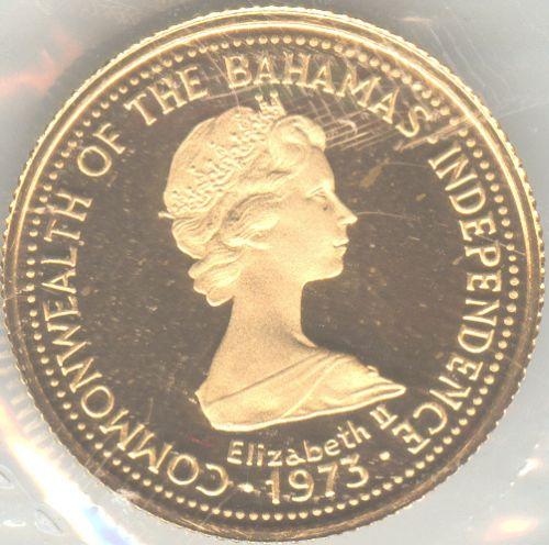 Bahamas $100.00 Gold 1975 Proof, KM # 73, 0.917 gold, .1609 oz AGW in plyofilm stored in case.