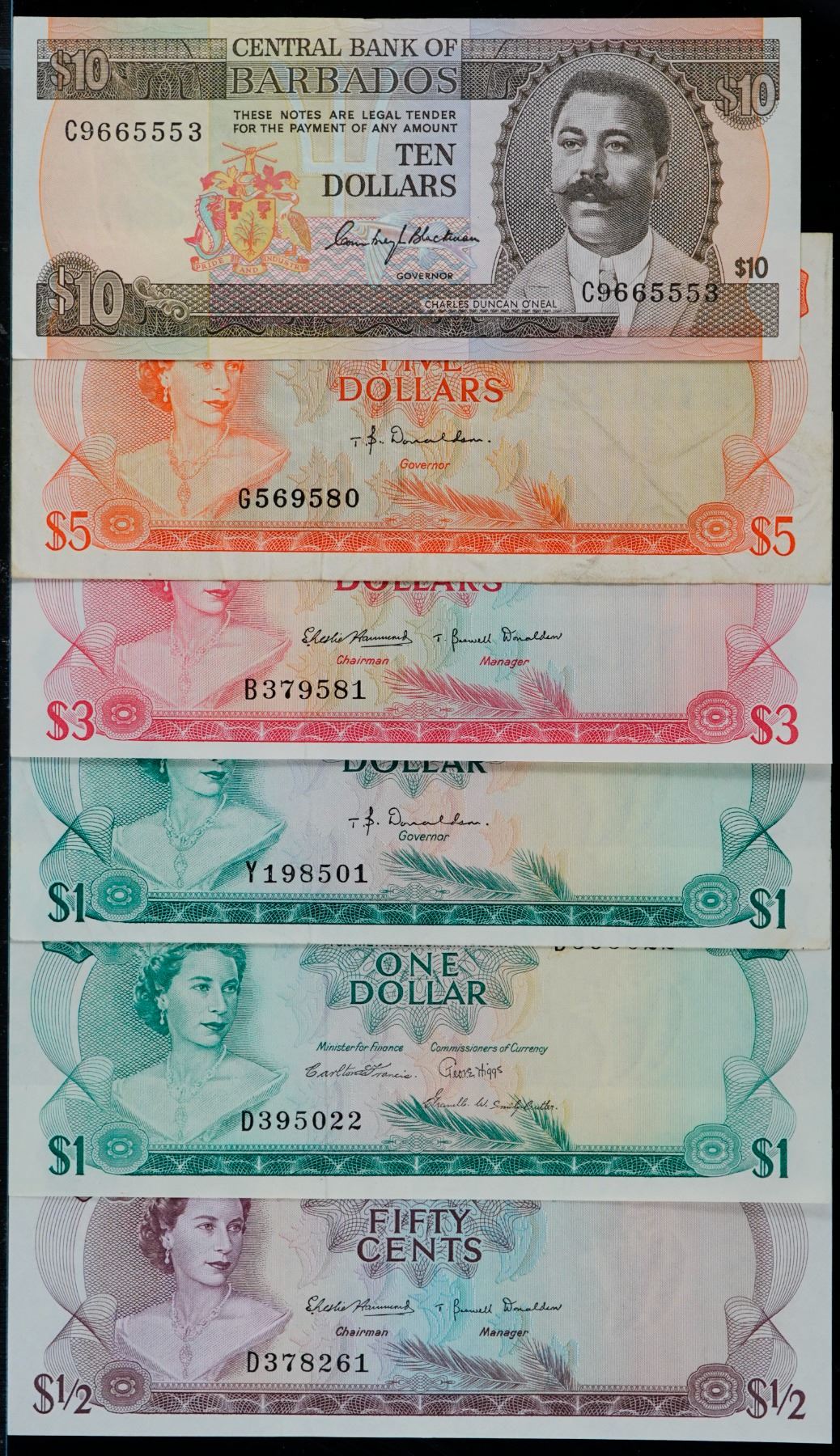 Bahamas; 1965-1974 $1/2, $1 (2), $3, $5, $10 VF to Choice Unc. Lot of 6 notes