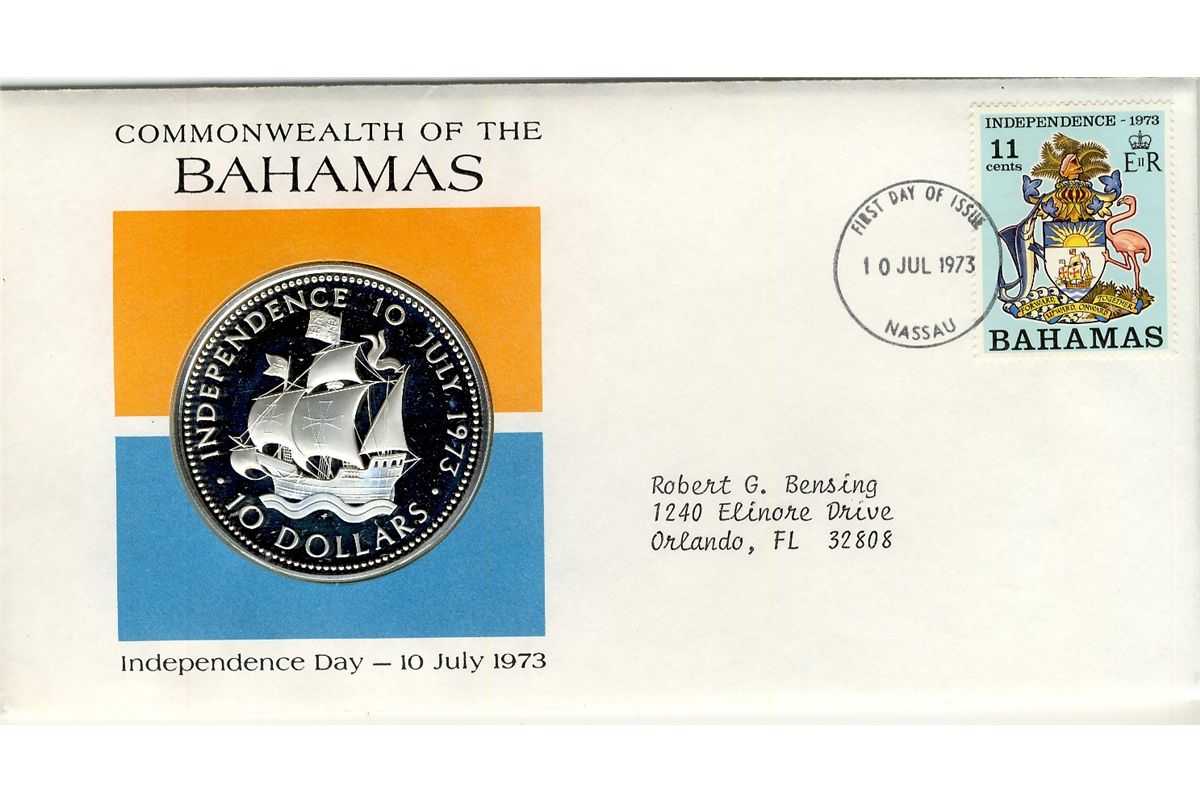 Bahamas 1973 Proof Sterling Silver $10 Independence coin. Lot of 2 examples both in original casing. (2,959oz)