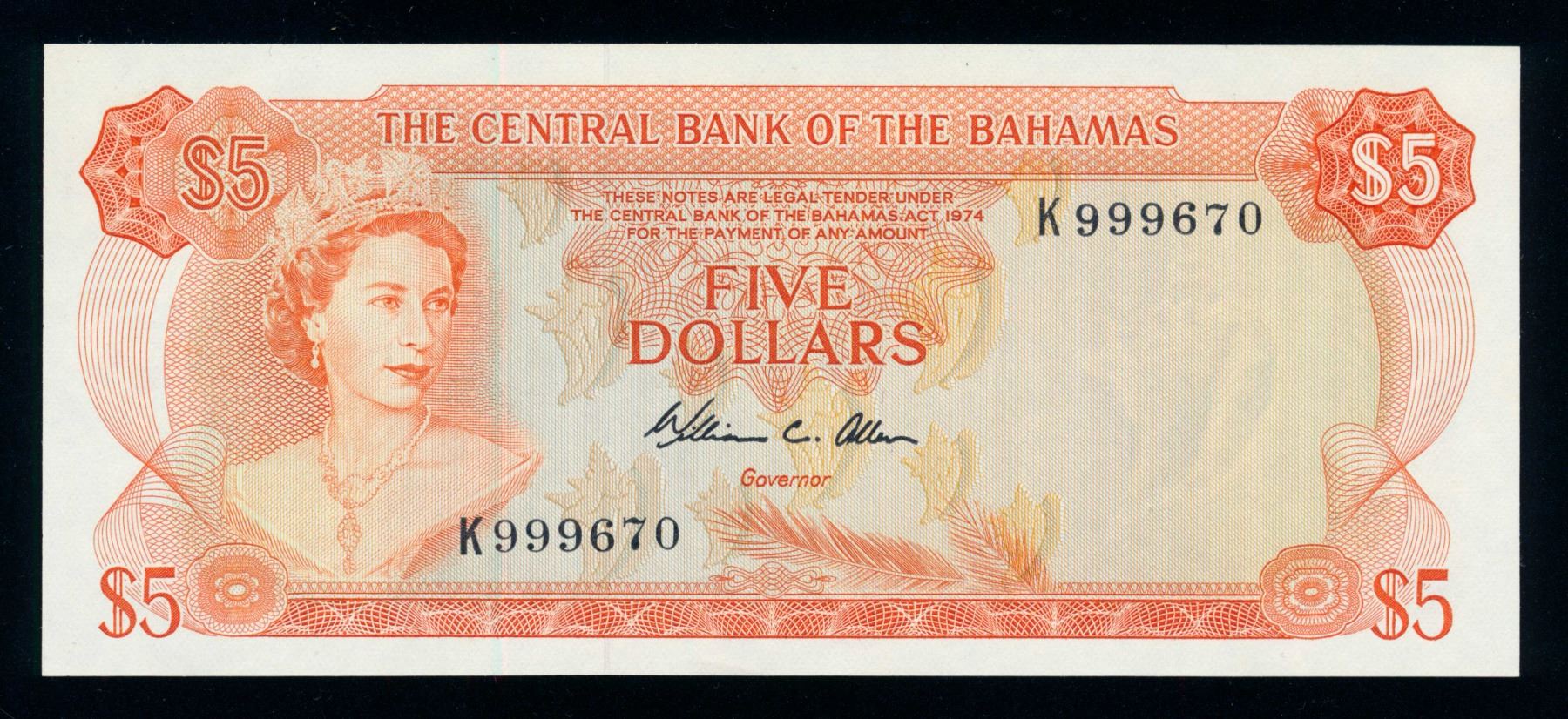 Bahamas $5.00 1974, P-37b Banknote UNC