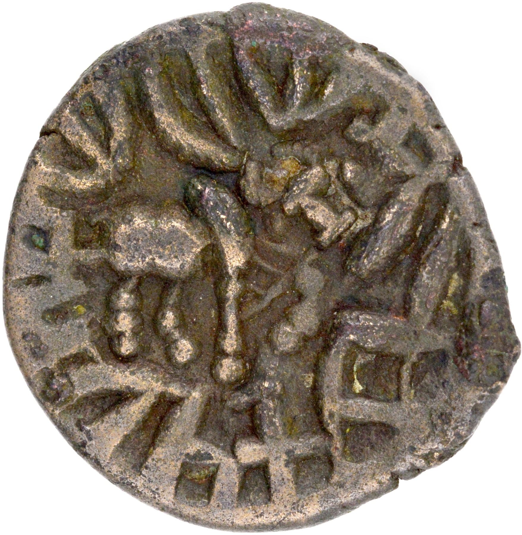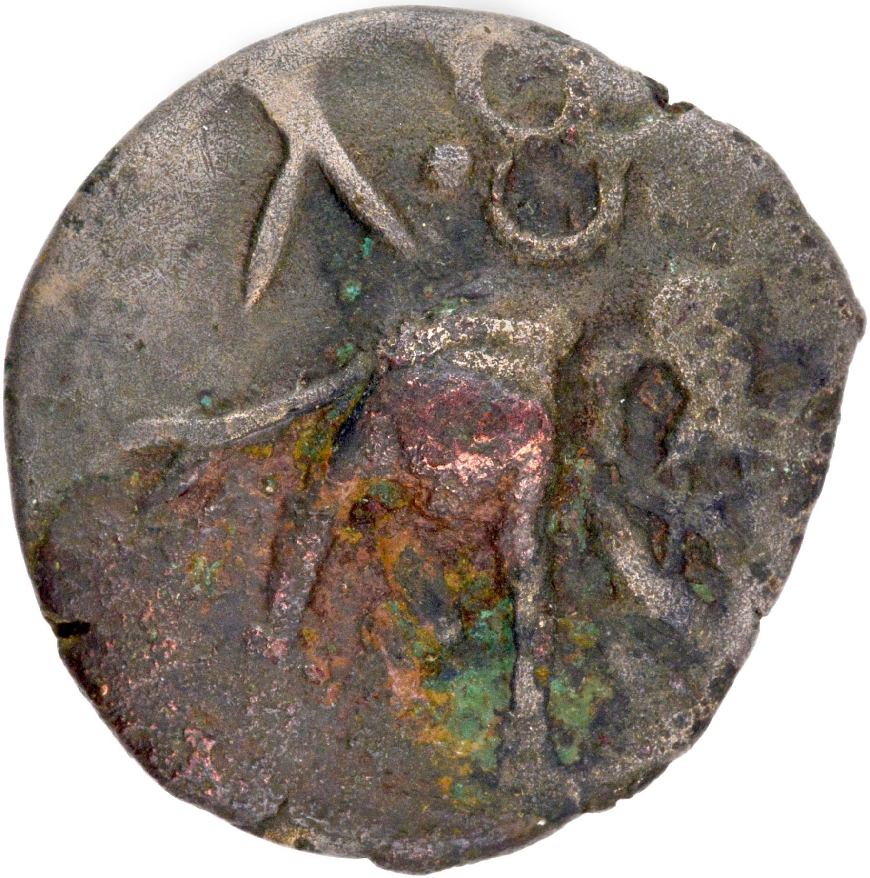 Post Mauryan, Tribal, Yaudheyas (150-100 BC), Cast Copper Unit (32 Rattis), 'Bahudhanyaka' type, Obv: a humped bull walking to the right towards a sacrificial standard (Yupa), the Brahmi legends “Yaudheyanam” (clockwise) and “Bahudhanya” (anticlockwise) around the field, Rev: an elephant walking to the right, a Nandipada and a pennon-like symbol above, 3.47g, 18.8mm, (Mitch. ACW # 4474-76/Handa # Pl. XL- 7), about extremely fine, Very Rare.