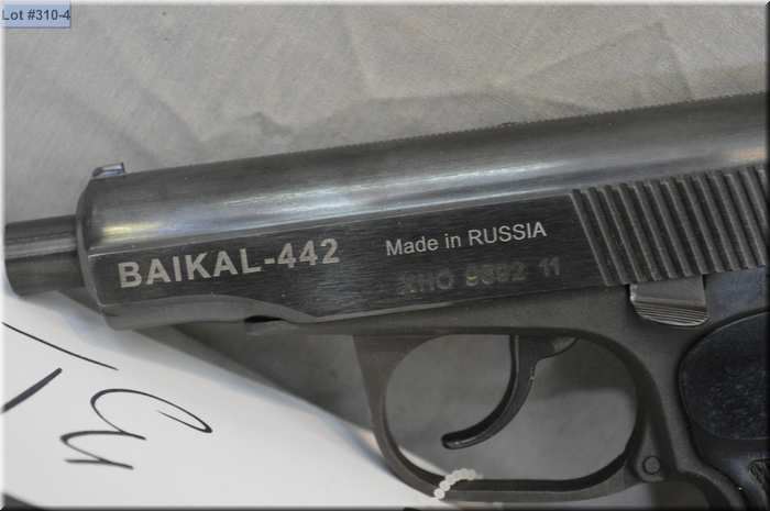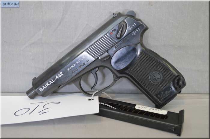 Baikal Mod 442 .9 MM Makarov cal 10 shot semi automatic PIstol w/ 106 mm bbl [ appears as new in orig box w/booklet, cleaning rod & extra mag, blued finish, black checkered grips, fixed sights ] Ser # XHO 9692 * Restricted Handgun Cert # 17135748