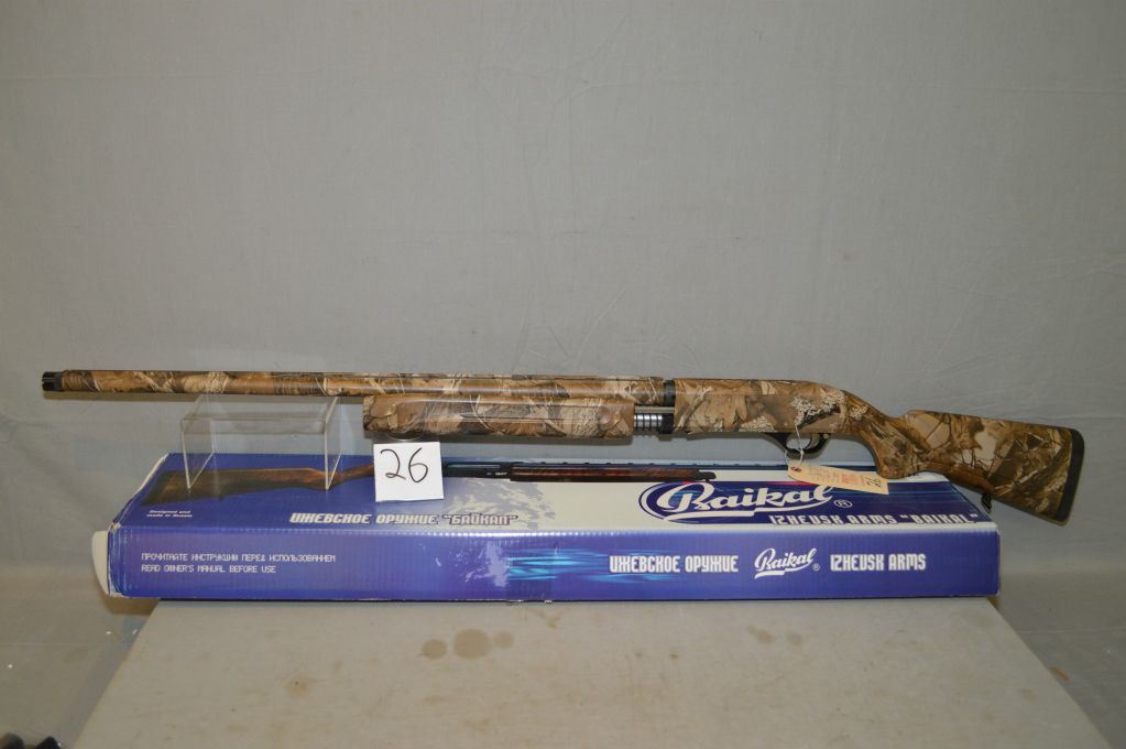 Baikal Model MP - 153 .12 Ga 3 1/2" Semi Auto Shotgun w/ 28" vent rib bbl [ N.I. Box w/booklet, blue finish w/tan camo pistol grip stock, w/various screw in chokes ] Ser # 1215308873