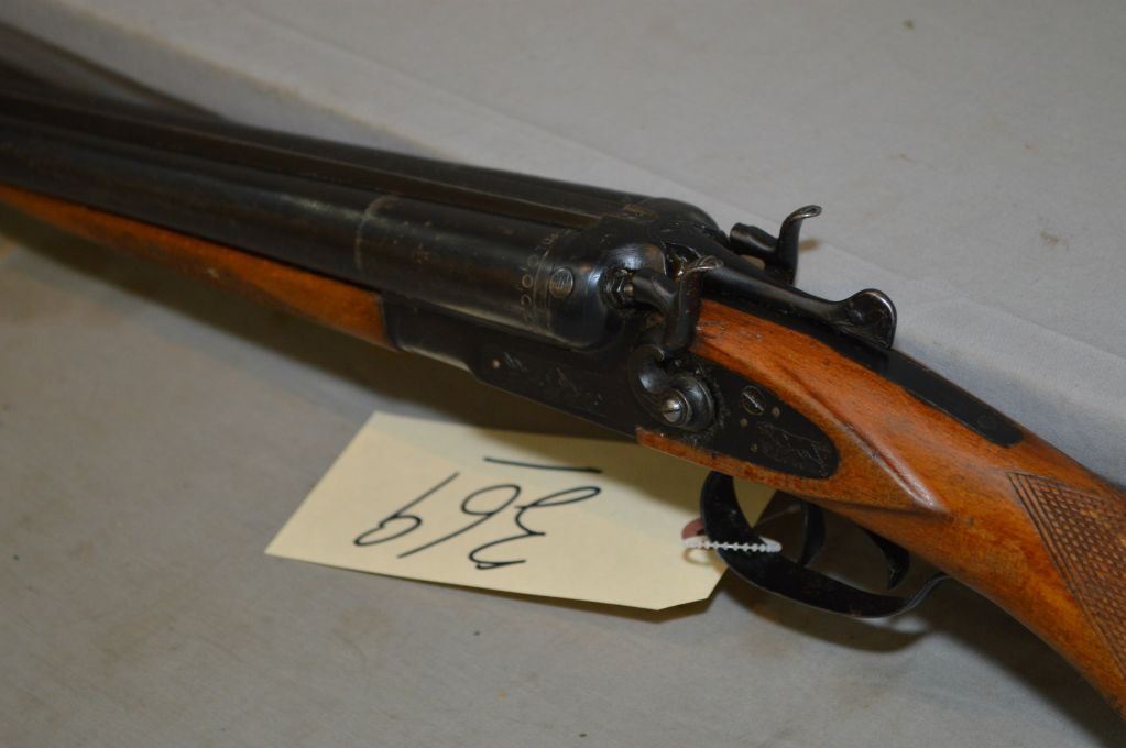 Baikal ( USSR ) Model T03 - 68 .12 Ga Break Action Side By Side Shotgun w/ 720 mm bbl [ fading blue finish w/some patchy marks, checkered pistol grip stock & forend, shows some wear & flaking varnish, sling swivels ] Ser # P18349