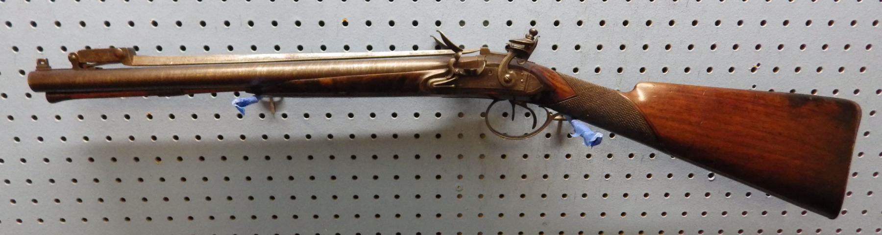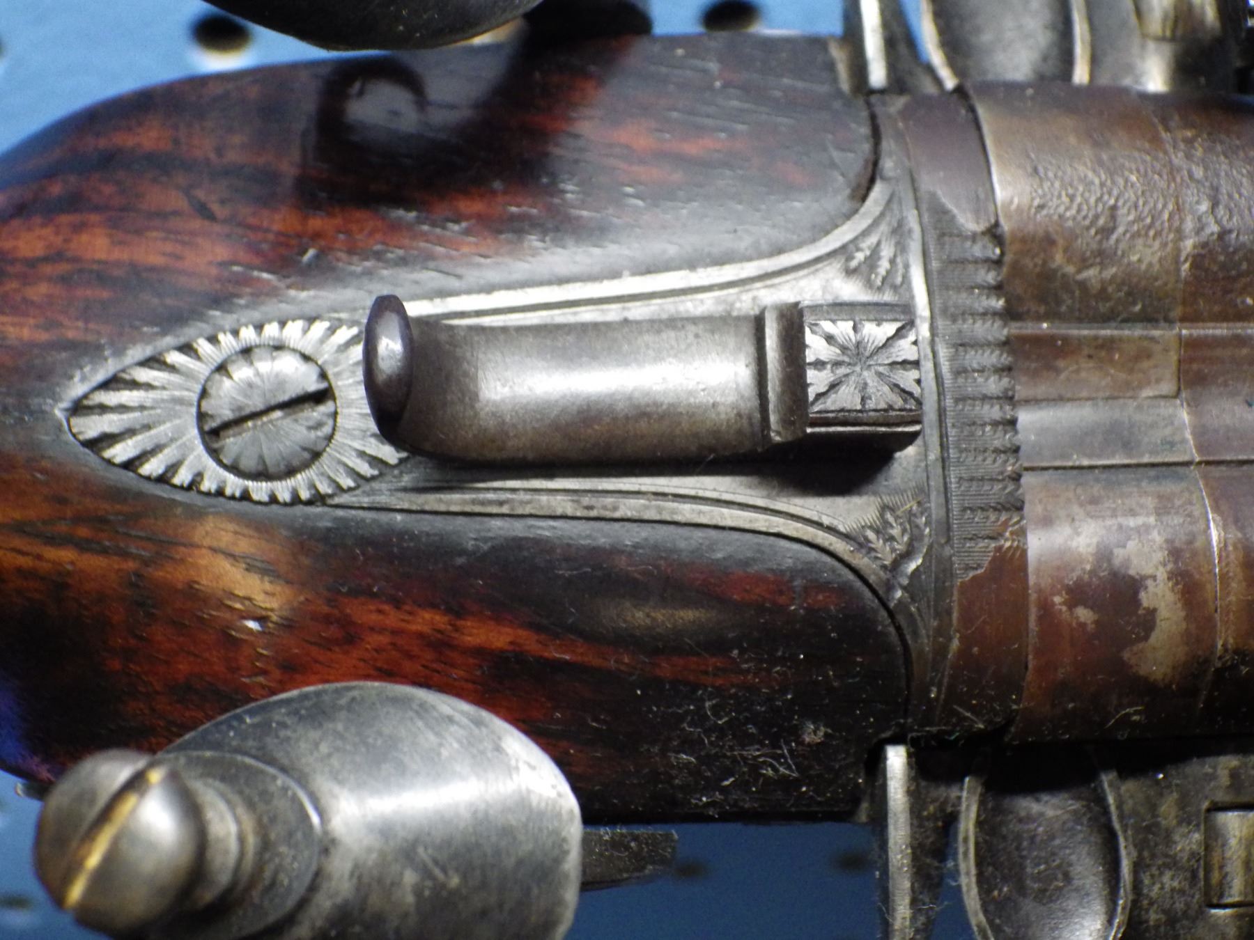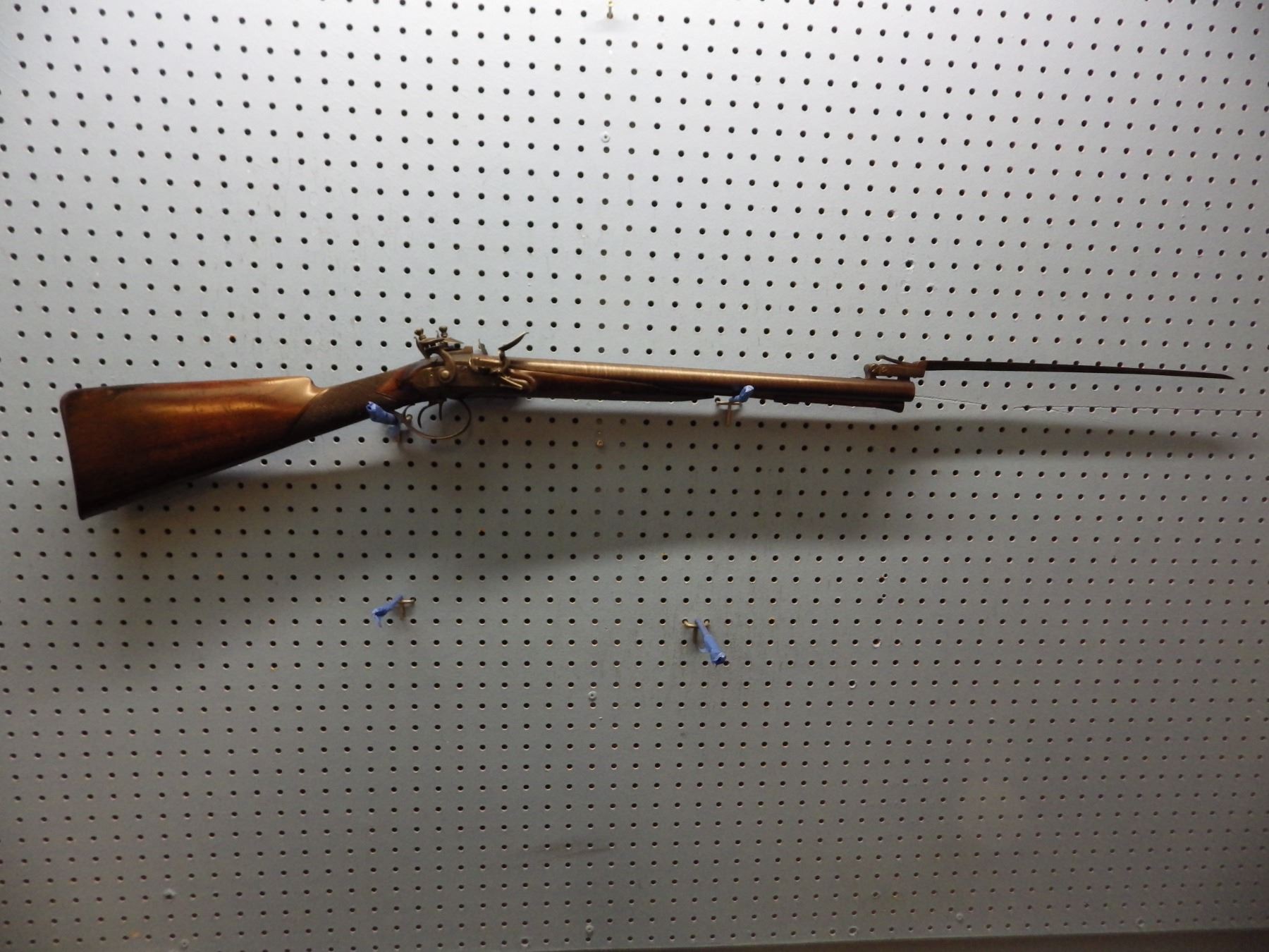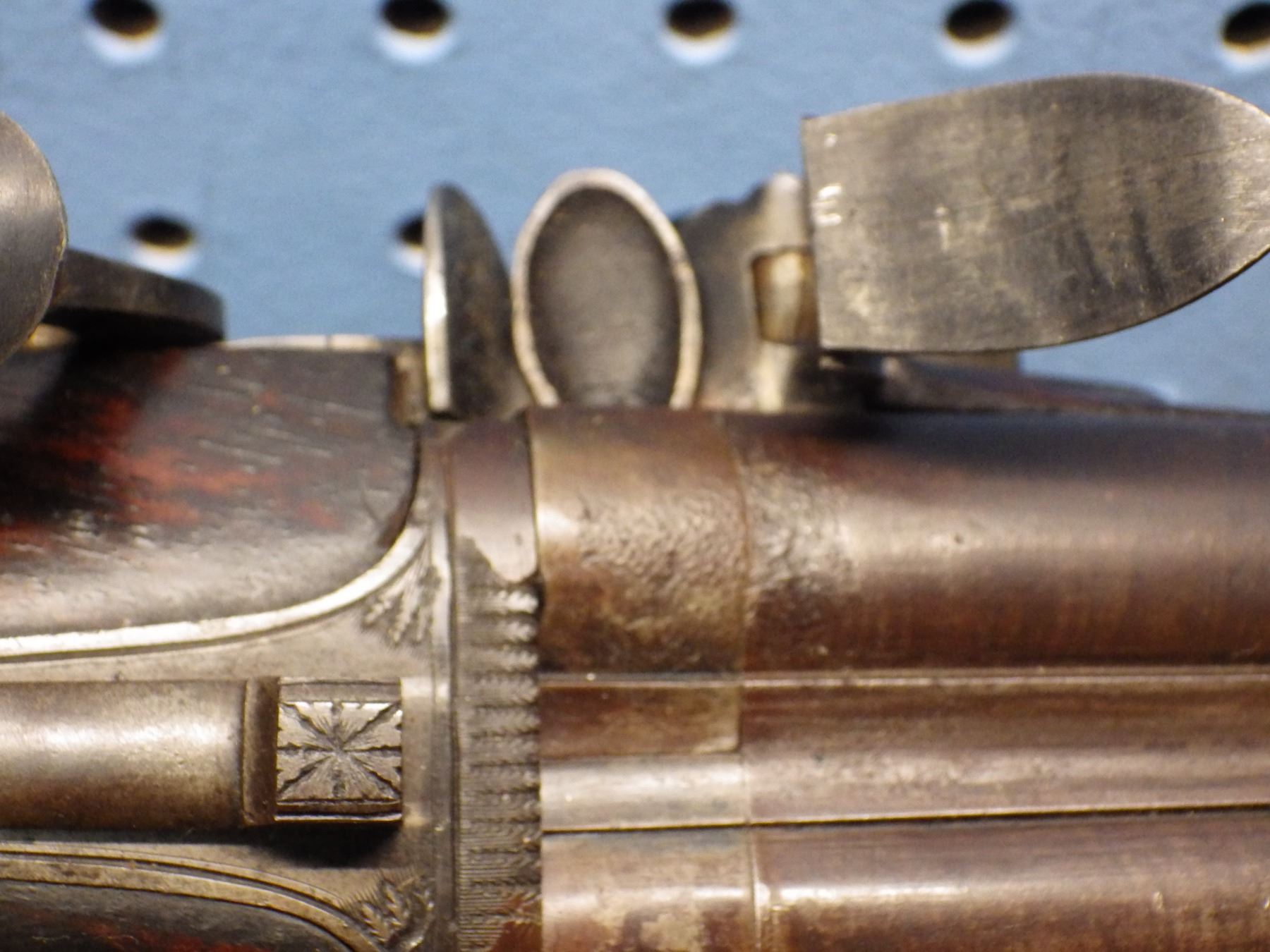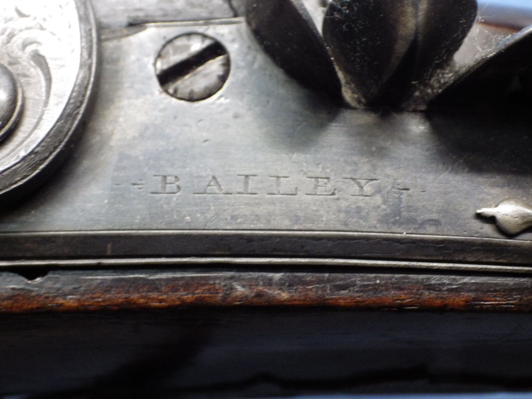 Bailey London flintlock dbl barrel coach gun, circa 1775-1800 .66 caliber, 17 3/4" barrels, with spring bayonet… CONSIGNOR # G96