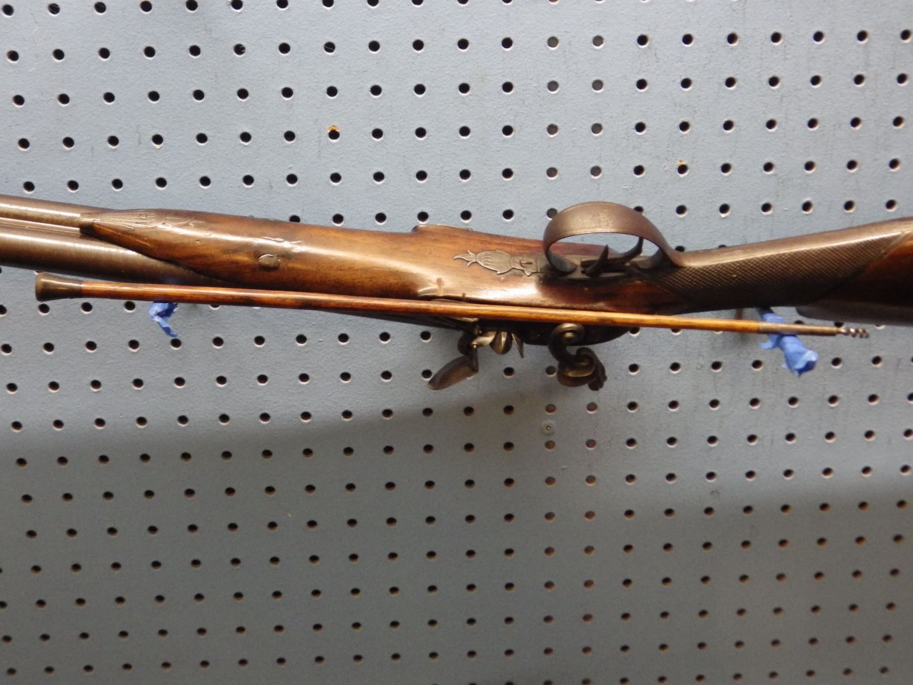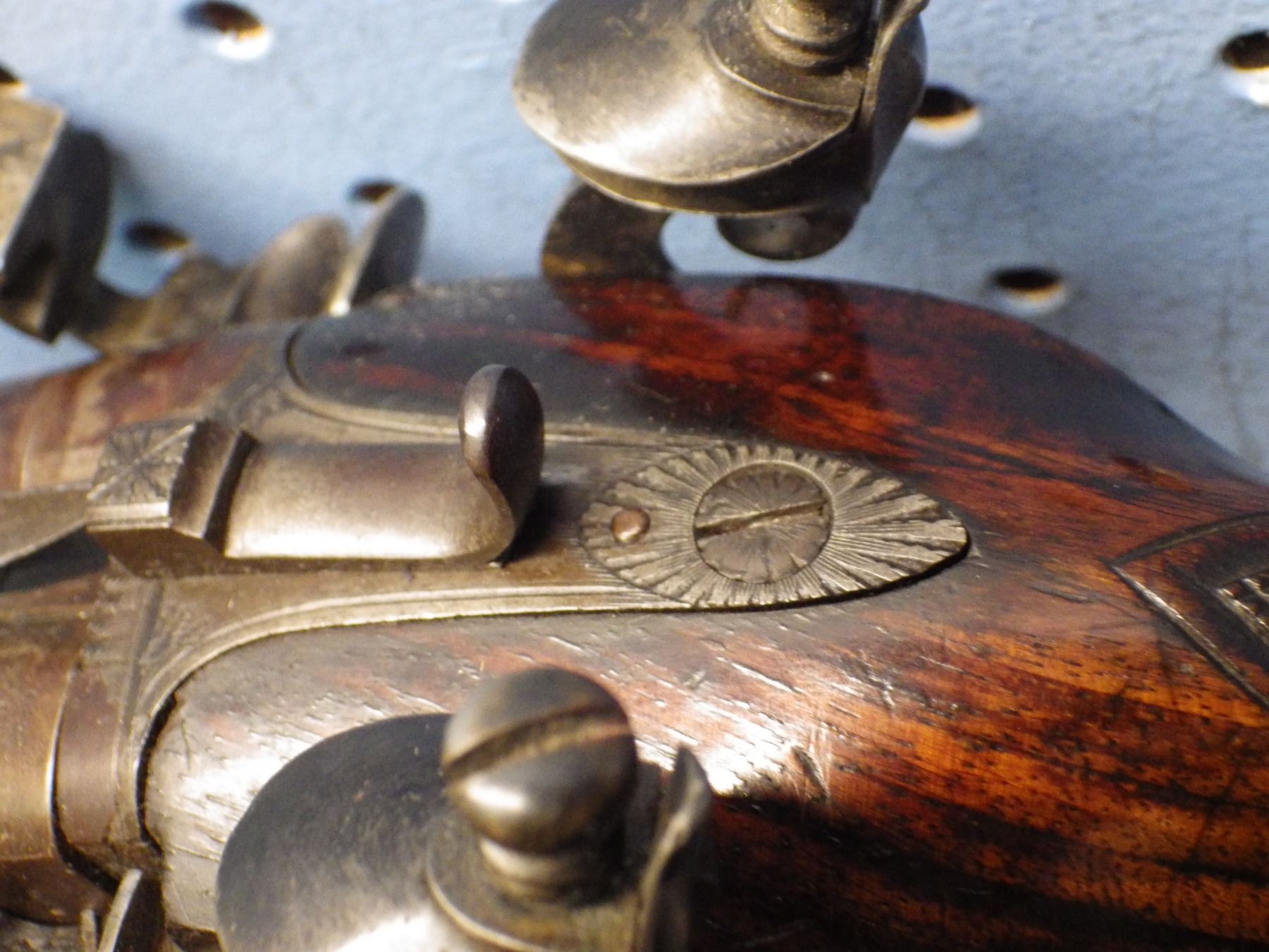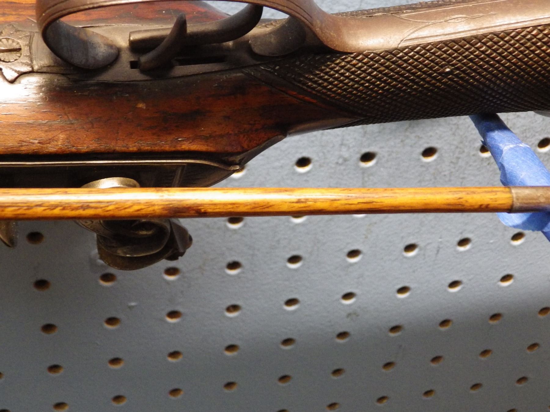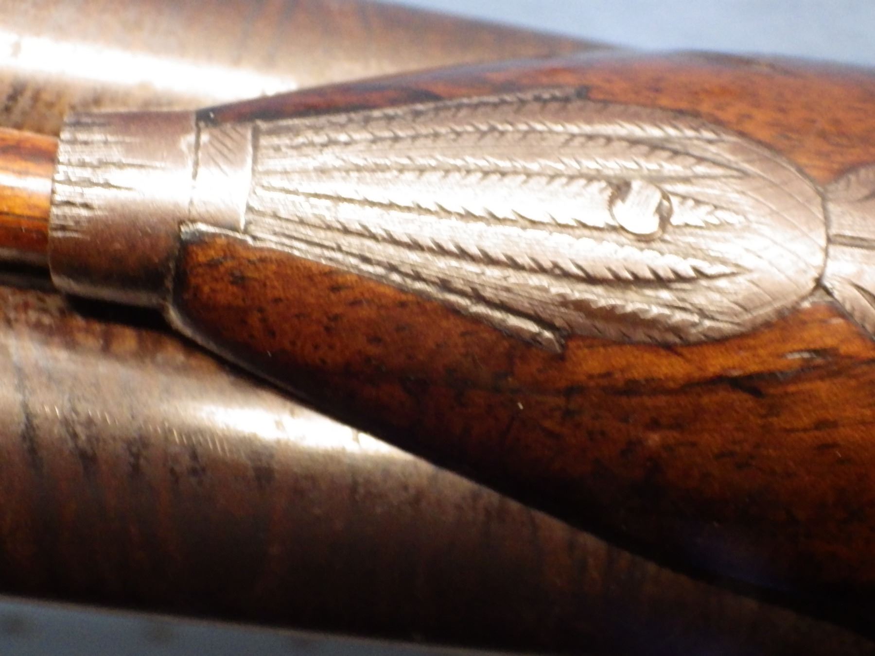 Bailey London flintlock dbl barrel coach gun, circa 1775-1800 .66 caliber, 17 3/4" barrels, with spring bayonet… CONSIGNOR # G96