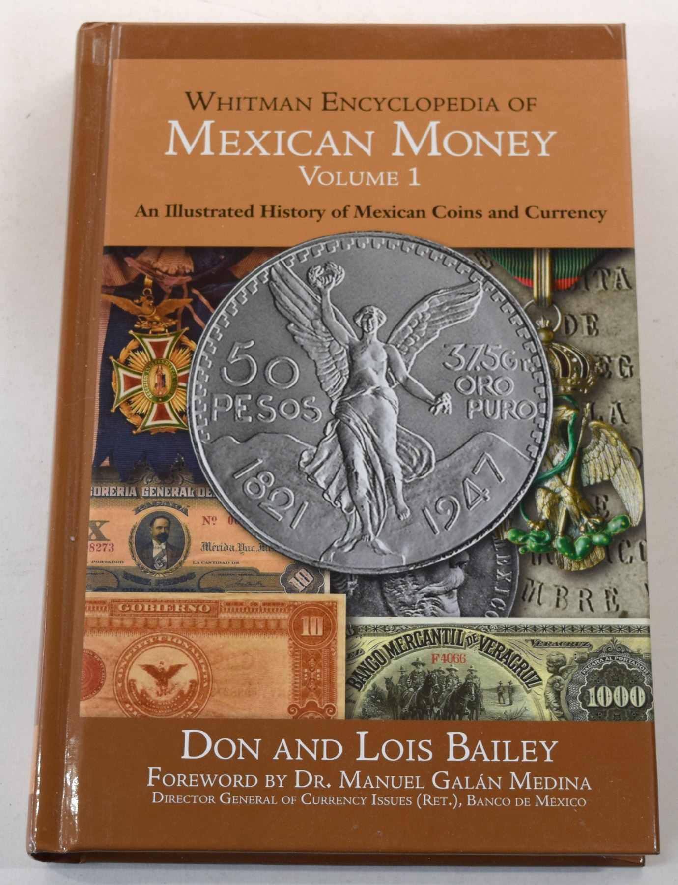 Bailey, Don & Lois Bailey. WHITMAN ENCYCLOPEDIA OF MEXICAN MONEY VOLUME I: AN ILLUSTRATED HISTORY OF MEXICAN COINS AND CURRENCY. Whitman Publishing, LLC. 2014. 8vo, 490 pages; Hardcover; Pictoral printed boards; This book is a comprehensive illustrated history of Mexican coins and currency. Examples are presented in color photos and arranged by type, date, denomination and variety. Subject: Coinage - Mexico