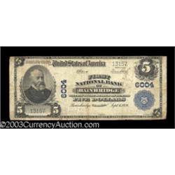 <TABLE cellSpacing=0 cellPadding=0 width="100%" bgColor=#000000 border=0><TBODY> <TR><TD width="100%"><TABLE cellSpacing=1 cellPadding=3 width="100%" border=0><TBODY><TR><TD width="100%" bgColor=#79735c><FONT face=arial color=#ffffff size=3><B>Description</B> </FONT></TD></TR><TR><TD width="100%" bgColor=#ffffff><FONT face=arial size=2><B>Bainbridge, GA</B></I> - $5 1902 Plain Back Fr. 608 <B>First NB</B></I> Ch. # 6004<BR>An evenly circulated large example from this elusive bank. <B>About Fine.</B></I> (250-450 ) </FONT></TD></TR></TBODY></TABLE></TD></TR></TBODY></TABLE><BR><TABLE cellSpacing=0 cellPadding=0 width="100%" bgColor=#000000 border=0><TBODY><TR> Important notice: Heritage usually auctions material at the rate of 200-250 lots per hour. On some occasions eBay Live bid software or the Internet may not be able to keep up with the pace of the auction. We recommend placing a realistic absentee bid now as insurance to avoid disappointment. Occasionally the auctioneer may eliminate or reject an eBay Live bid, and the auctioneer may also reopen a lot after the close of the eBay live bidding (usually because we missed an audience bid), and may reject your bid even if it shows you as the winning bidder. By bidding via eBay Live, you agree that Heritage may award the lot to another bidder at its sole discretion under the circumstances described above or any other reasonable circumstances. Also please note that all Heritage lots purchased through eBay Live carry a 20% Buyer's Premium. Please make sure you read the Terms and Conditions before you bid.</TR></TBODY></TABLE>