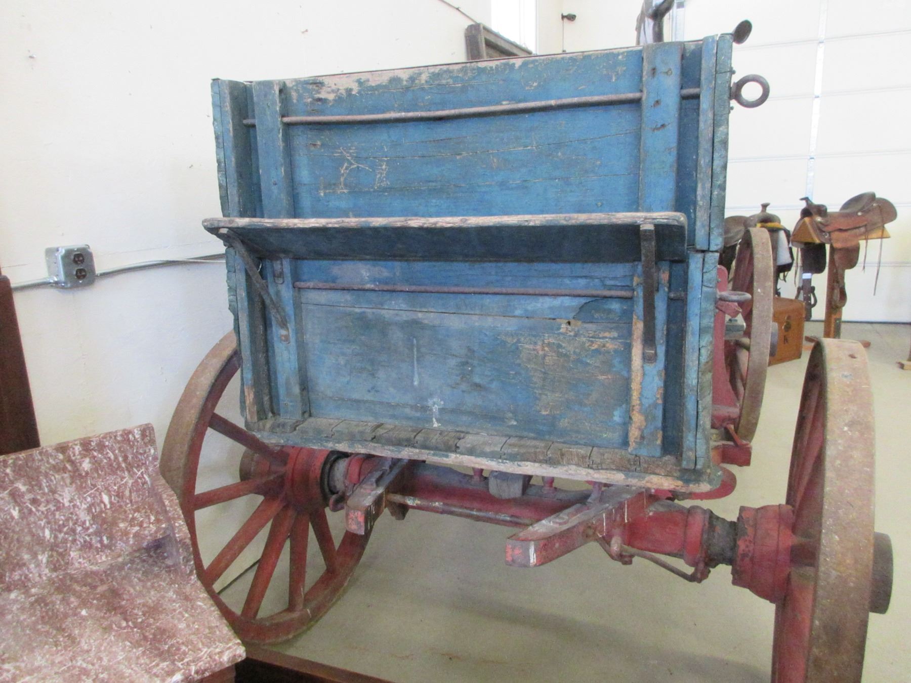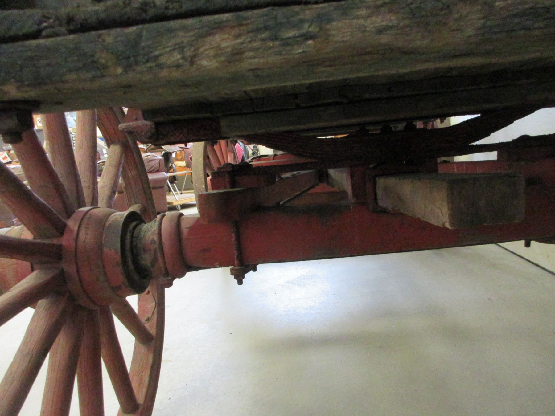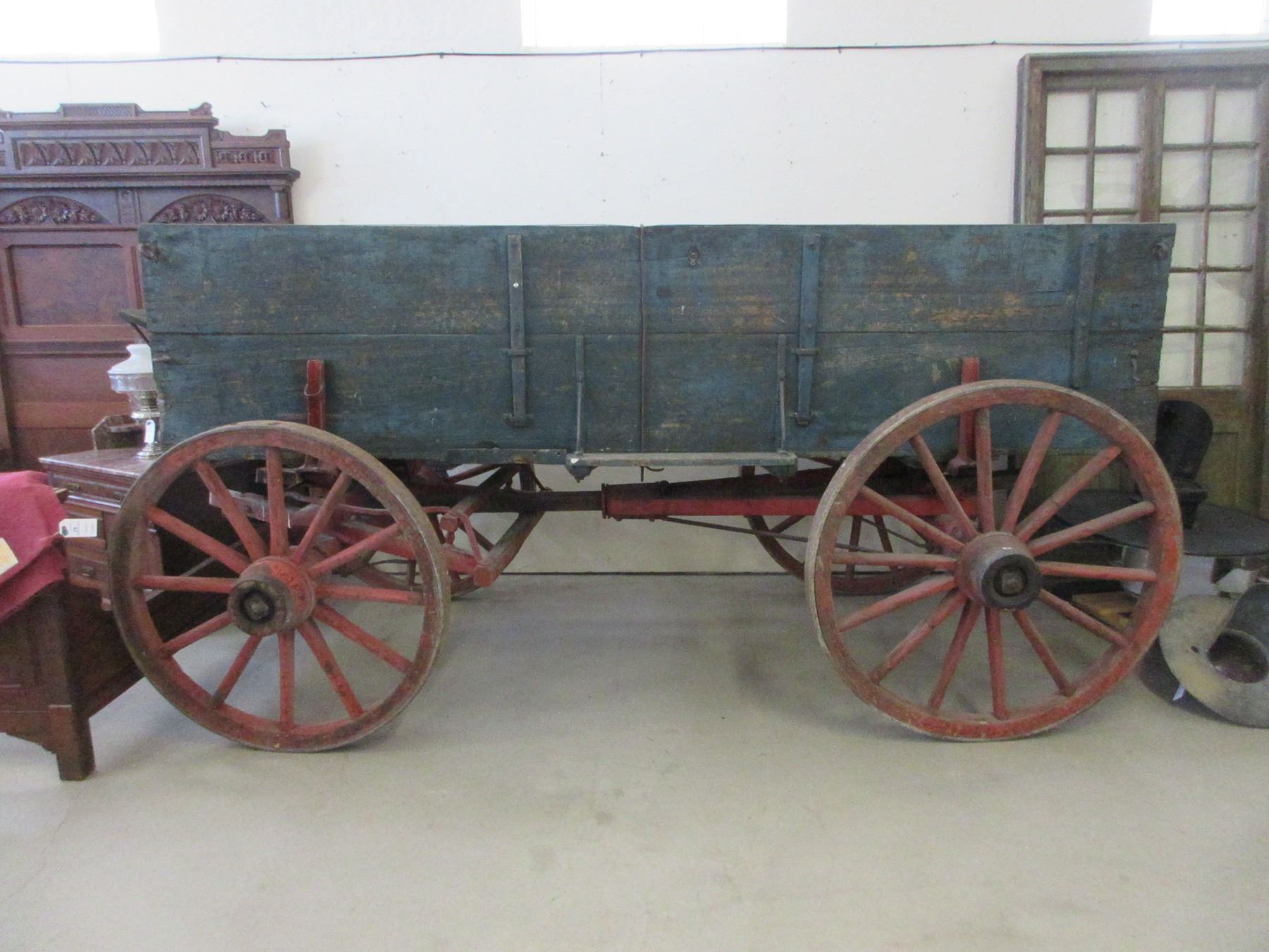 Bainf Freight Wagon- Rear Wheels 45"- Front Wheels 41"- Double Tree- Tongue- 10'6" X 38"- Wheels And Running Gear Are In Good Condition- Box Fair Condition
