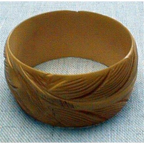 </font></strong>A nice wide carved bakelite bracelet with 2 large carved leaves. It is a lovely yellow color and makes a powerful statement on its own. It is in excellent condition with no cracks or chips etc.</font>