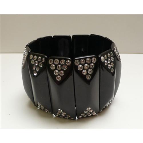 <tr><td>Title:Bakelite Black & Rhinestsone Stretch Bracelet</td></tr>