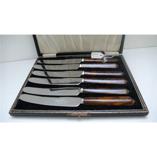 <tr><td>Title:Bakelite Boxed Set Fruit Knives</td></tr>