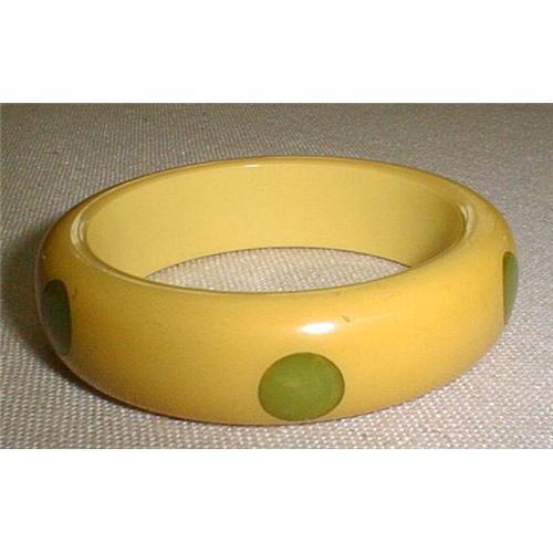 <tr><td>Title:Bakelite Bracelet Cream color with 6 green dots</td></tr>