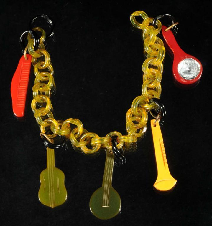 Description Bracelet with five instruments. Condition (Excellent). Size 7 - 1/2" L.