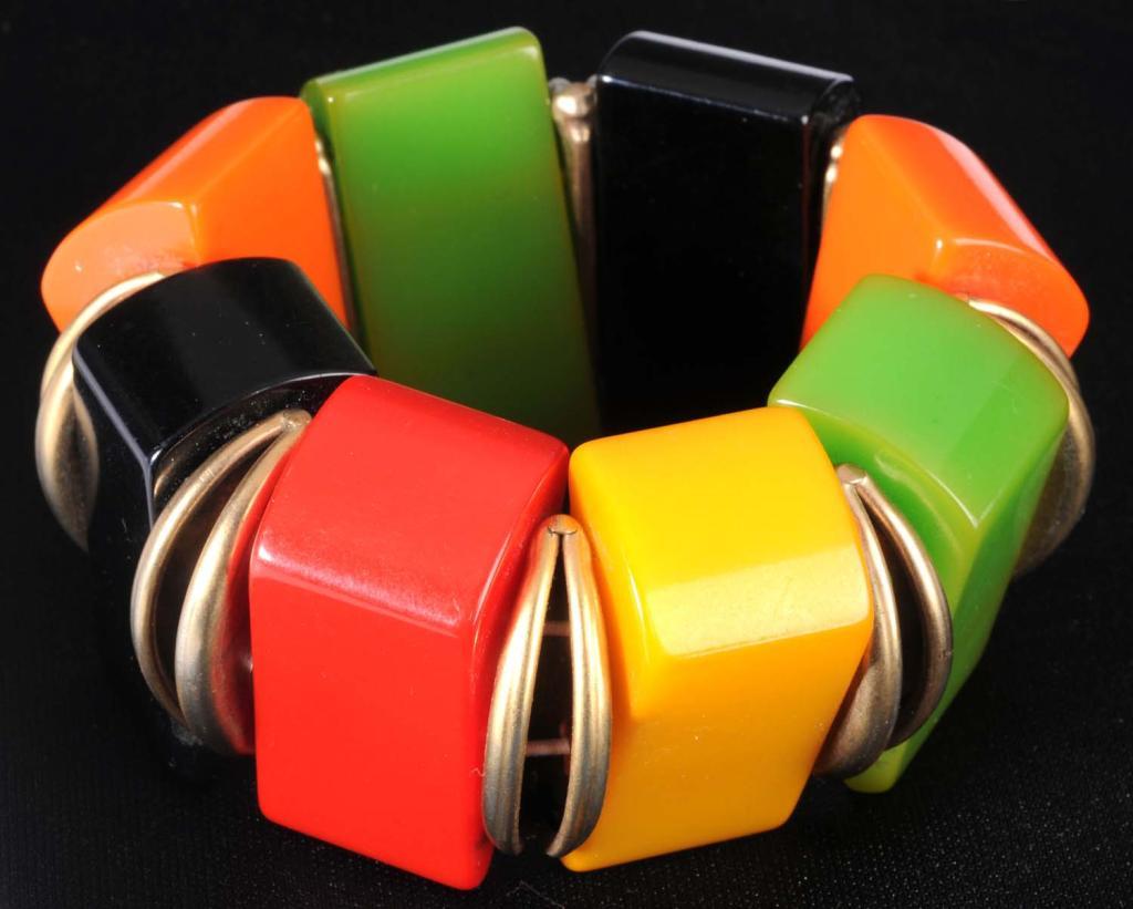 Description Four colors of Bakelite. Will fit most wrists. Condition (Excellent). Size 3".