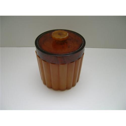 <tr><td>Title:Bakelite Butterscotch Deco Ribbed Box</td></tr>