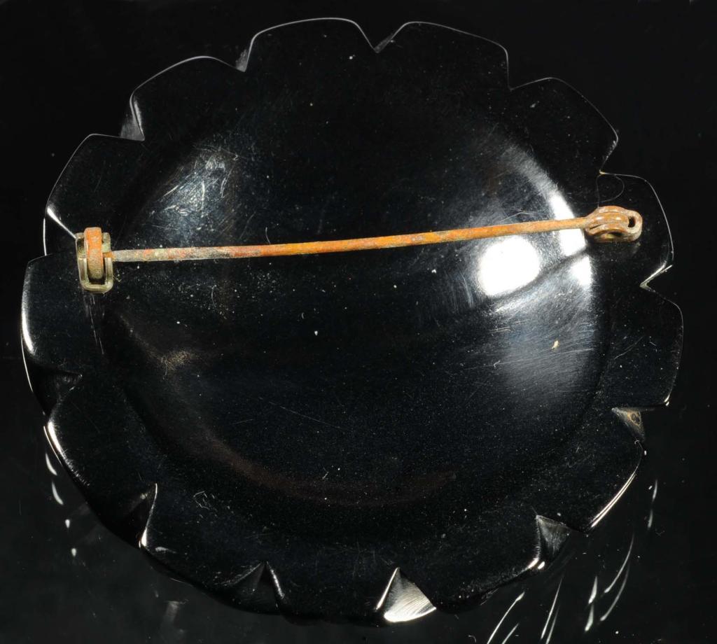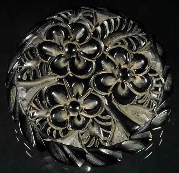 Description Depicts carved floral decor. Condition (Excellent). Size 2 - 1/4" Dia.