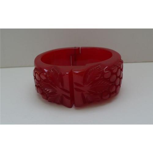 <tr><td>Title:Bakelite Chunky Red Carved Hinged Bangle</td></tr>