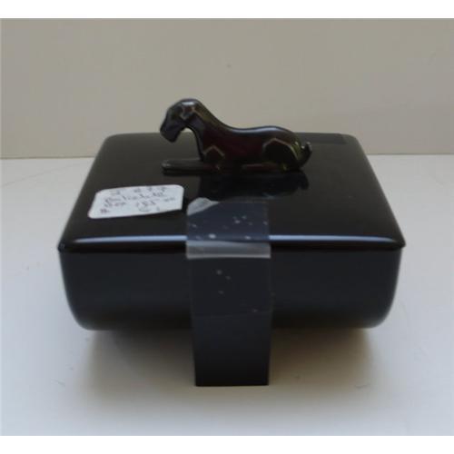 Delightful Vintage Black Bakelite Box with a metal dog sitting on