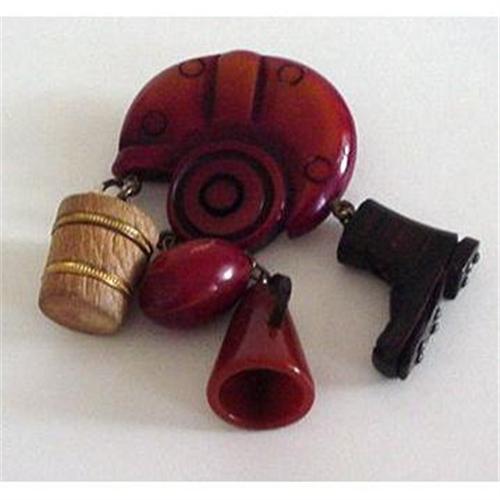 <tr><td><font size="2" face="Arial, Helvetica, sans-serif"><strong><font color="#000033">Title:</font></strong>Bakelite Football Helmet With Dangles Brooch</font></td></tr>