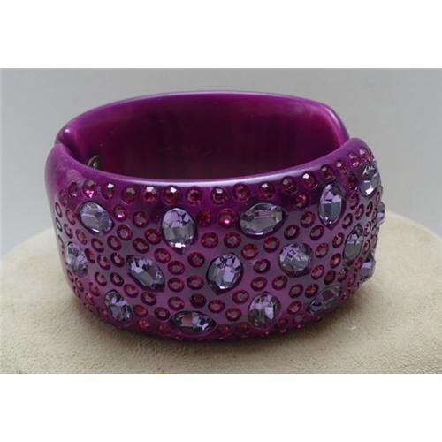 <tr><td>Title:Bakelite Fuchsia Rhinestone Hinged Bangle</td></tr>